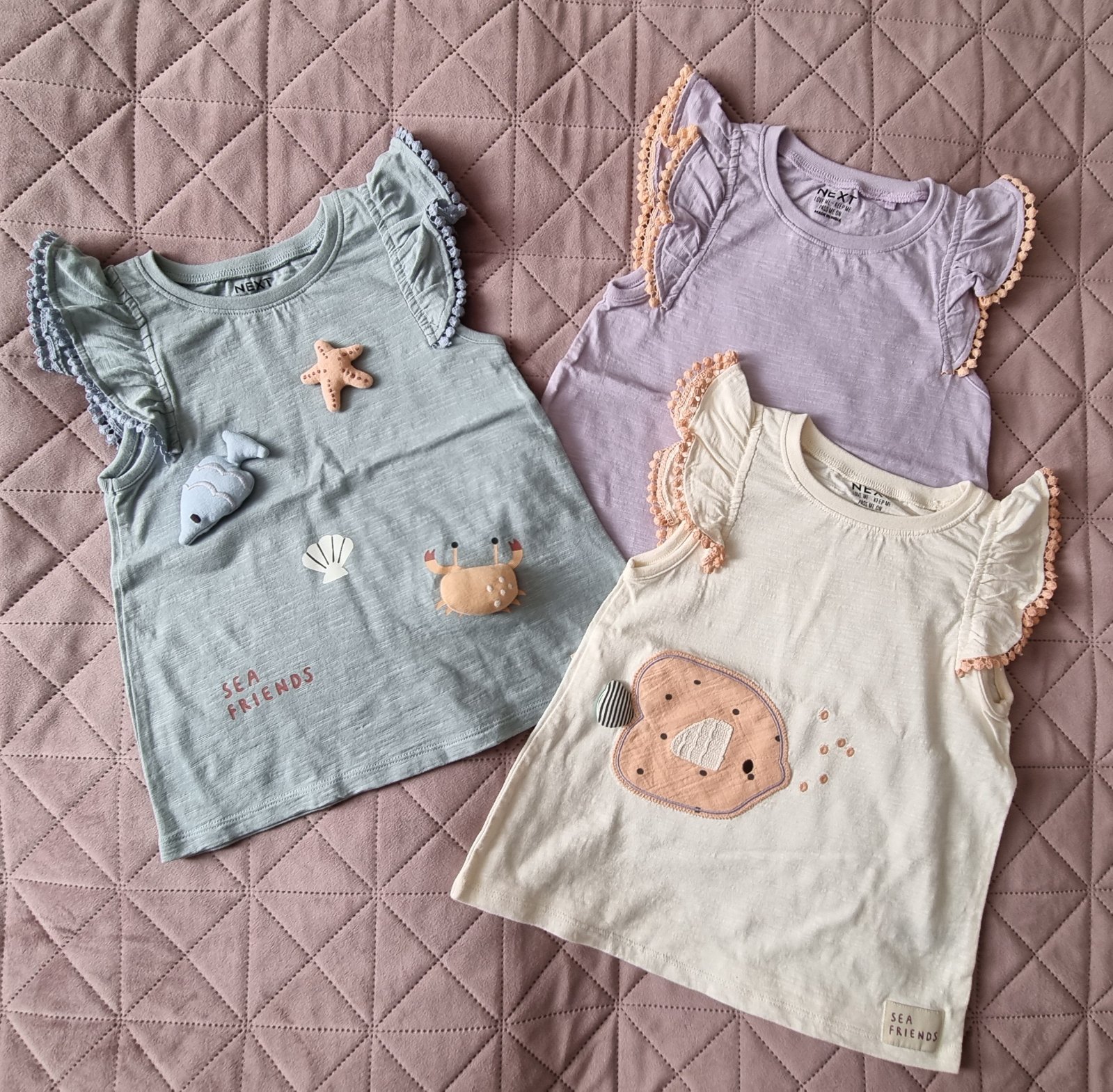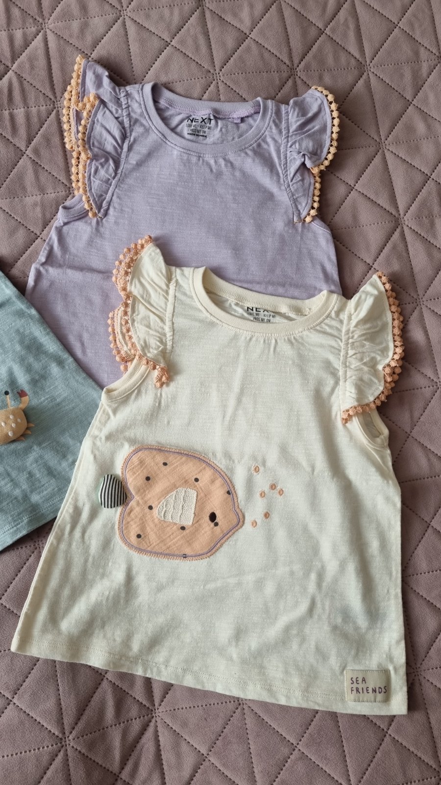 Predám tieto krásne a kvalitné topy značky Next vo veľkosti 110cm, vhodné pre 4-5 ročné dievčatko. Neboli vôbec nosené, takže sú vlastne nové, len boli uložené v skrini. Pôvodná cena bola 27€.