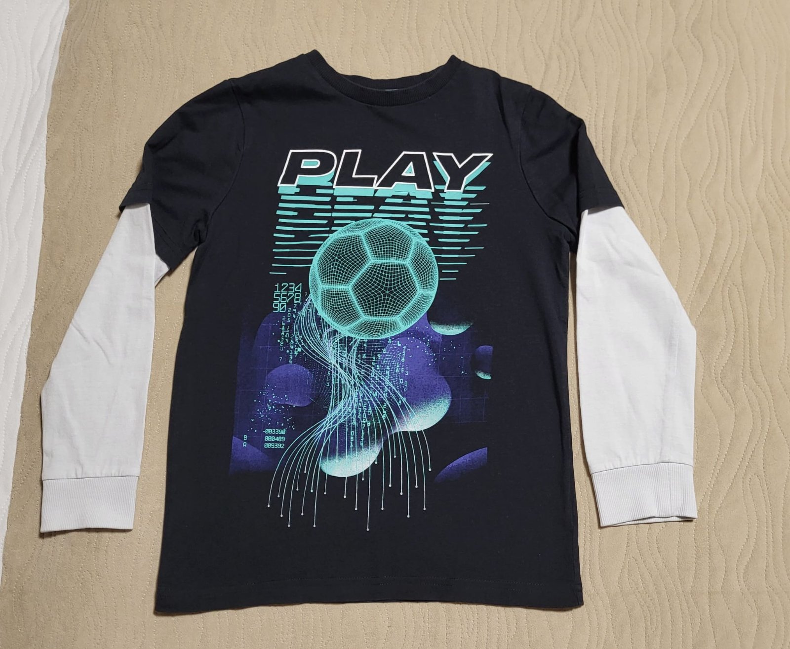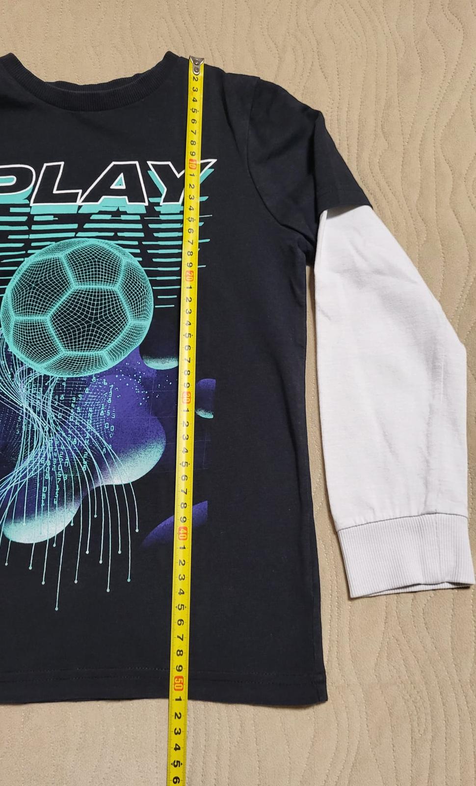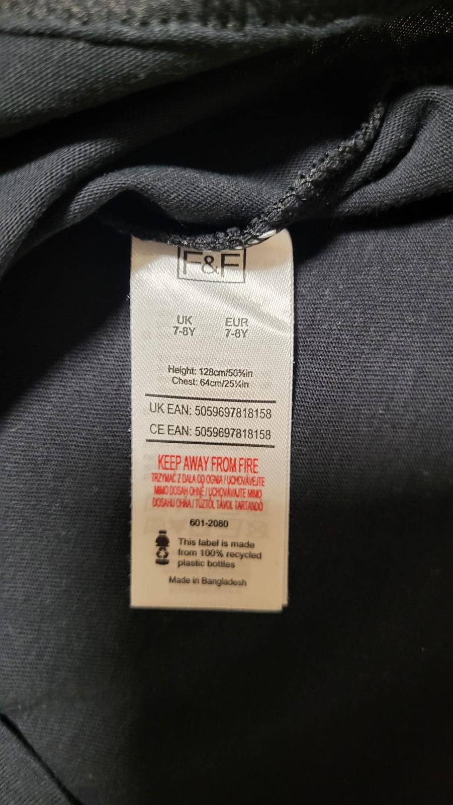 Tricko zn. F&F, velkost uvadzana 8-9, radim ako 128, riadte sa rozmermi na foto. Cierna nie je syta, od novoty taka doseda. Nosene, bez poskodeni.