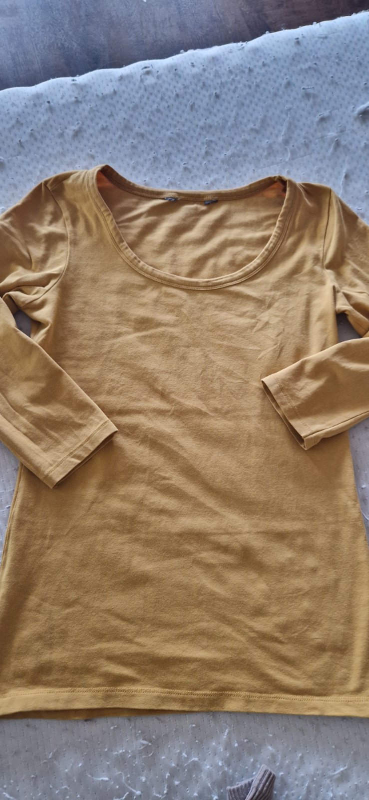 Dámske značkové bavlnené tričko. Je mierne elastické. Dĺžka je 55cm,obvod hrudníka je 82cm a obvod pása je 76cm. Dĺžka rukáva je od krku 65cm. kód 378A