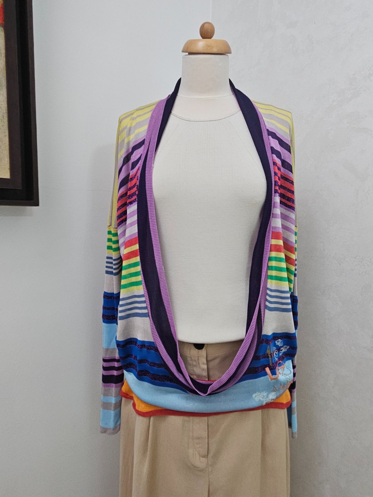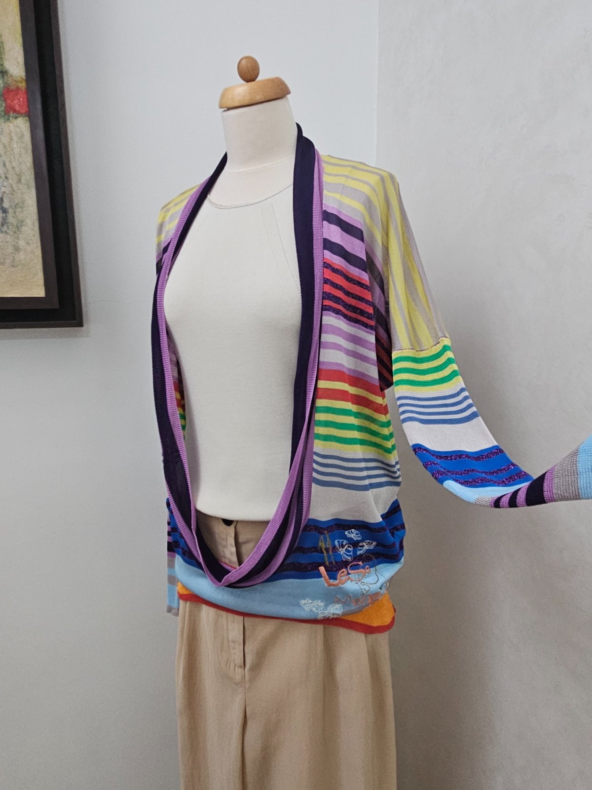 Ľahký top s veľkým výstrihom. Desigual XL, oversize strih, dole zúžený. Ideálny ako vrchný prehoz cez ramená. Materiál viskóza je ľahký, padavý a chladivý. Nosený, ale stále v dobrom stave.