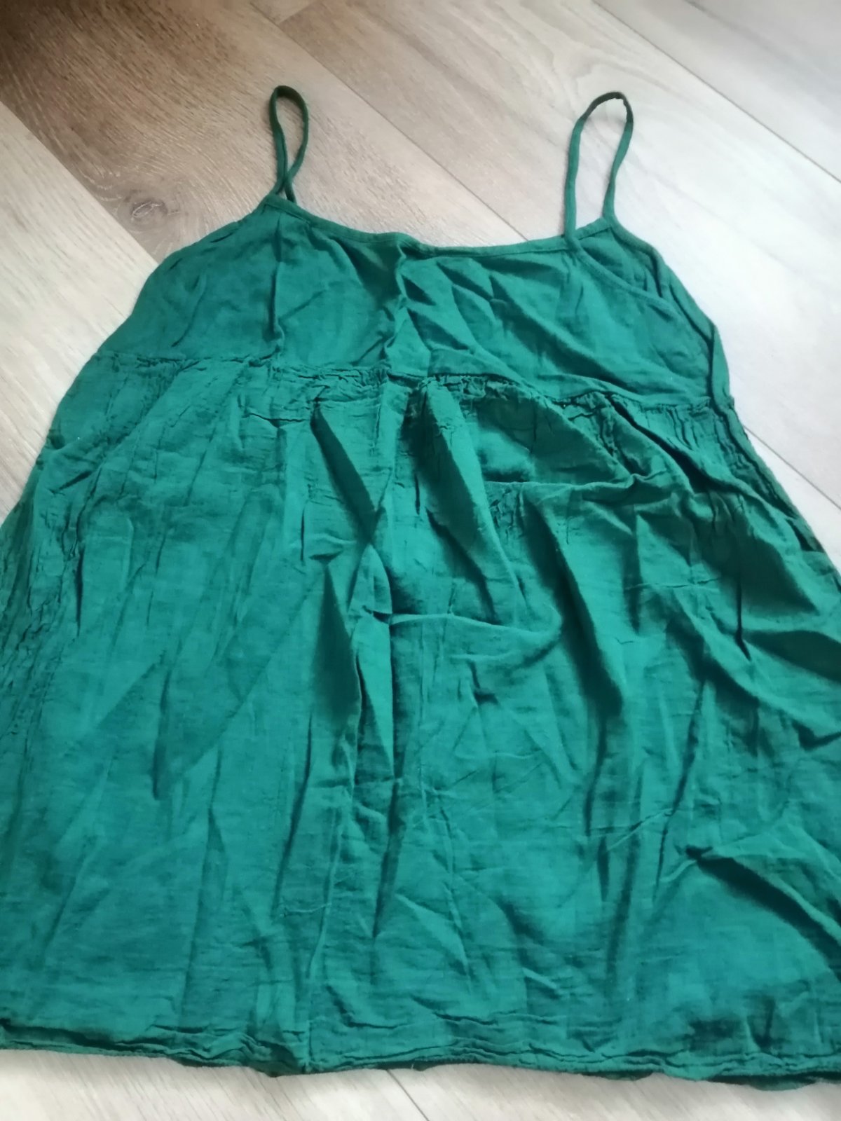 Riaseny šifonovy top, vzadu hladký, farbu sa mi nepodarilo zachytit je to taka syta tmava smaragdova