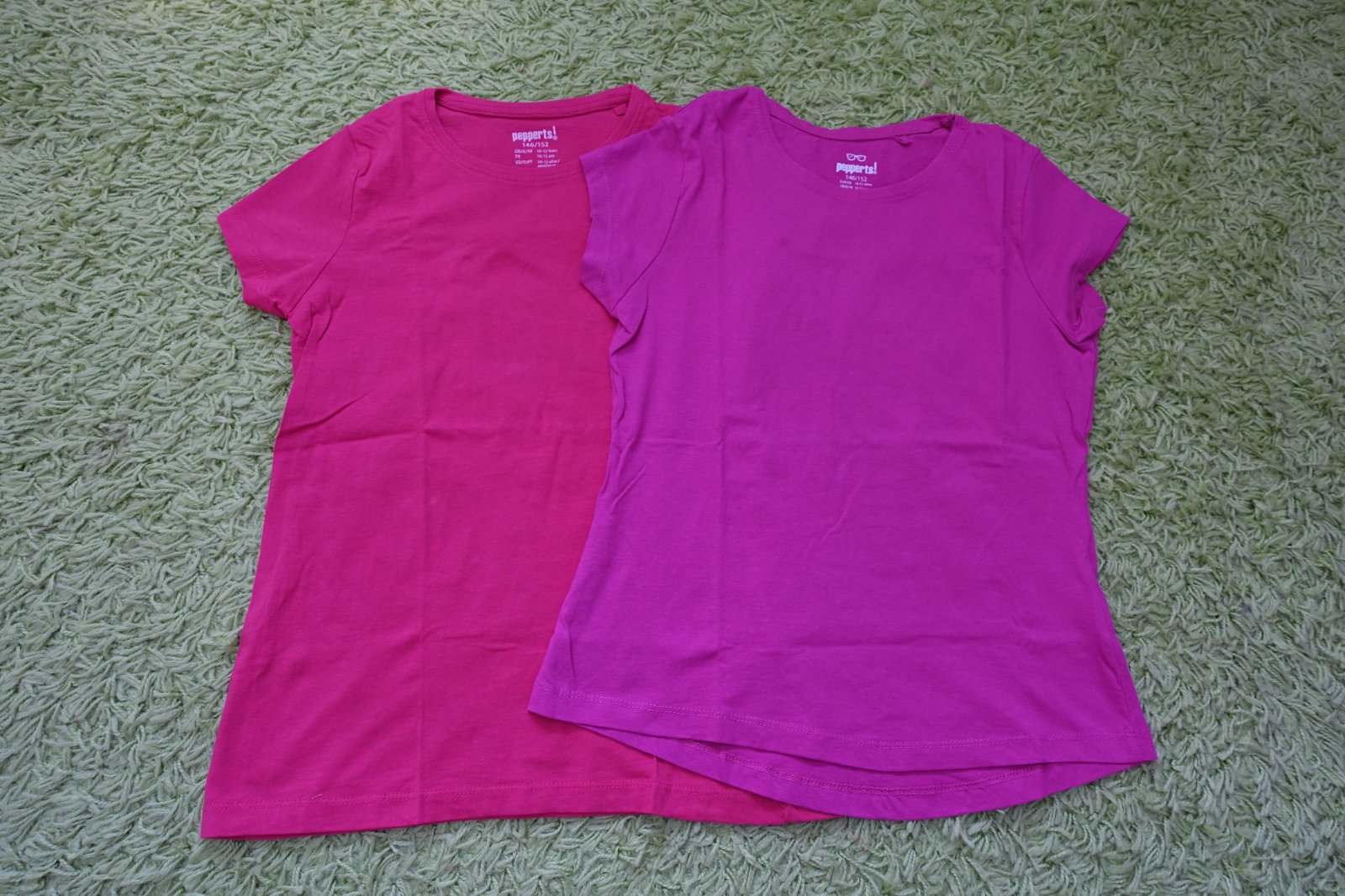 Predám 2 tričenká všetky vo veľkosti 146/152. Obe sú rovnakej značky. Farba kratšieho je súto ružová, dlhšie má farbu malinovú. Oblečené boli 1x, sú top stav. Nemajú ani fľaky, ani dierky, ani žmolky. Celková dĺžka malinového tričenka je 56 cm, sýtoružové má predný diel 54 cm a zadný diel je o 2,5 cm predĺžený. Predávam aj samostatne, cena je uvedená za 1 ks. (G)