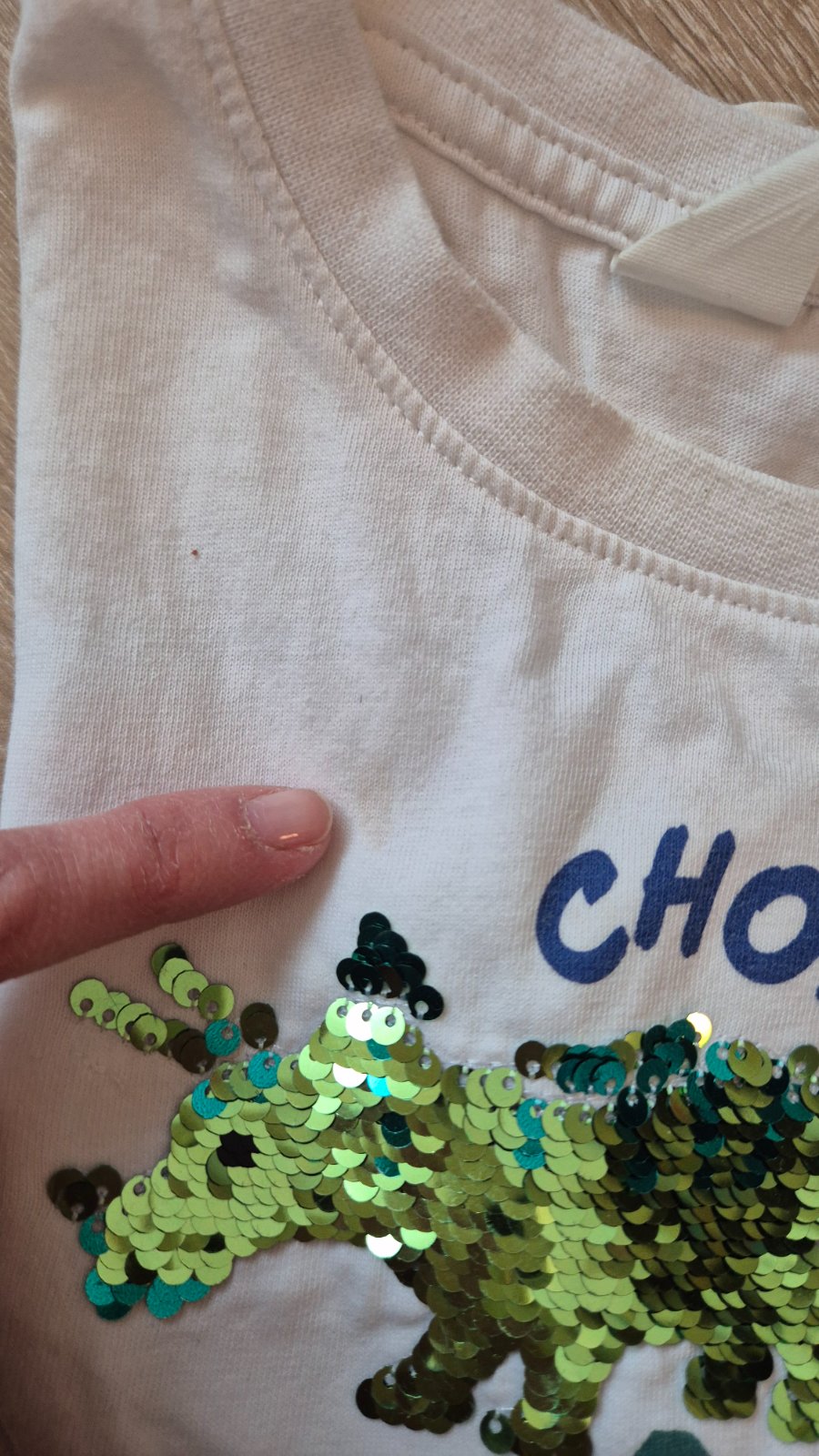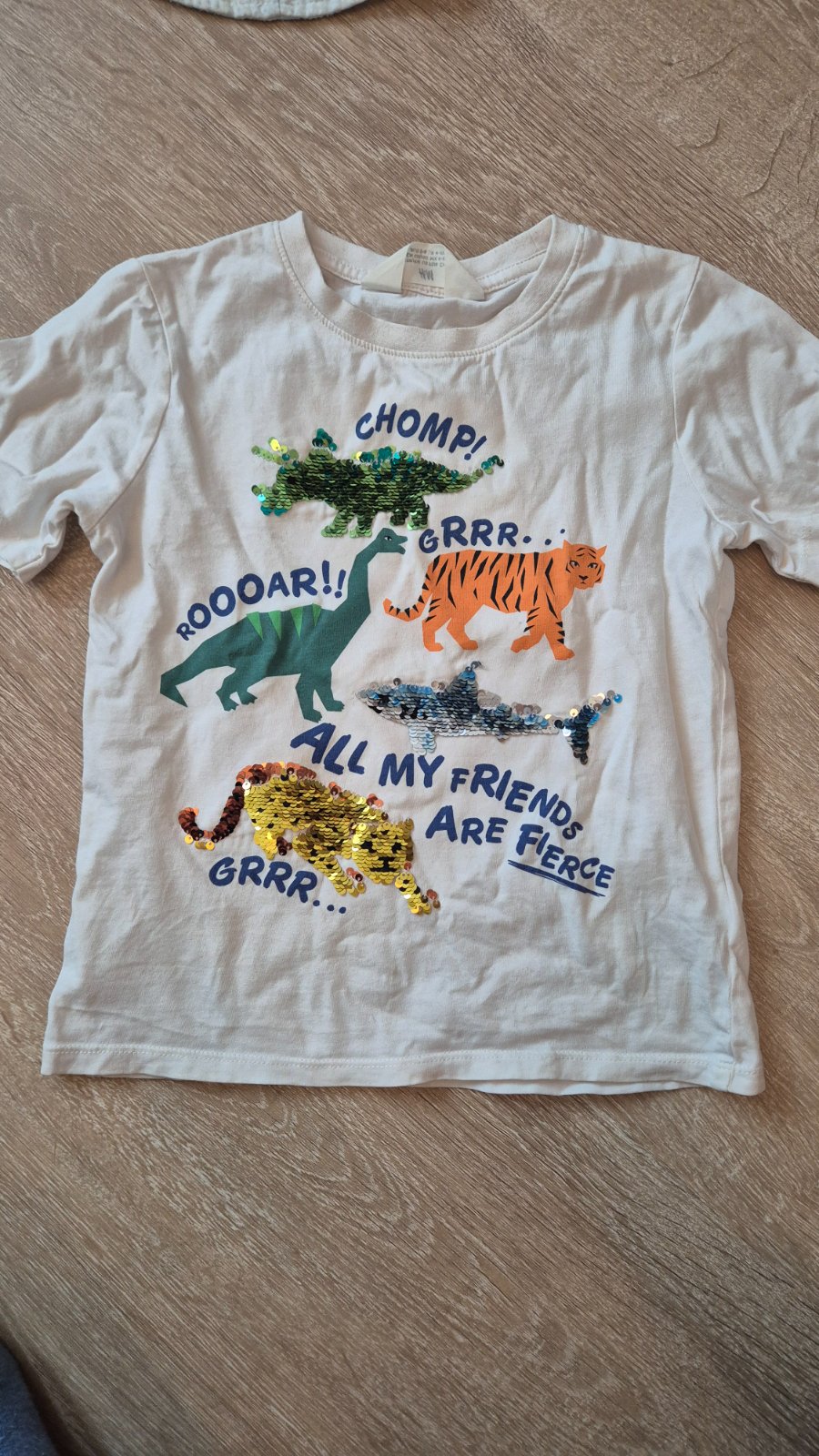 Krásne tričko s flitrovanymi žralokmi. Veľkosť 110/116