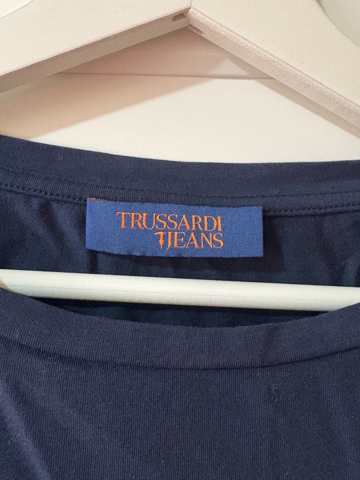 Tmavomodré trendy tričko 3/4 rukáv,sorry nie je vyžehlené.Super k jeansom,perfekt stav.Zn.Trussardi Jeans.
