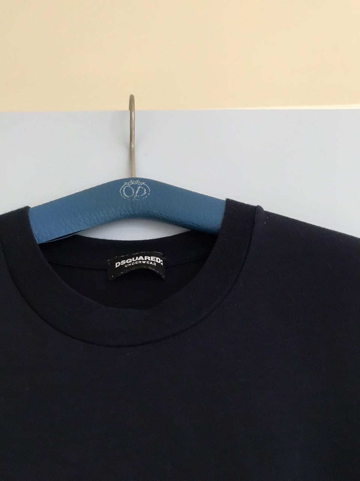 luxusné značkové unisex tenučké ľahké tričko značky DSQUARED2 - prémiová kanadská značka,ťažko určiť či je sýto tmavomodré alebo čierne,veľmi kvalitné,obsahuje 95% modal - čo je viskóza,inak nazývaná umelý hodváb,5% elastan,šírka 50 x 2 cm,ešte sa poddá,dlžka 72/73 cm - ked sa oblečie jemne sa skráti.Kto pozná značku - vie oceniť