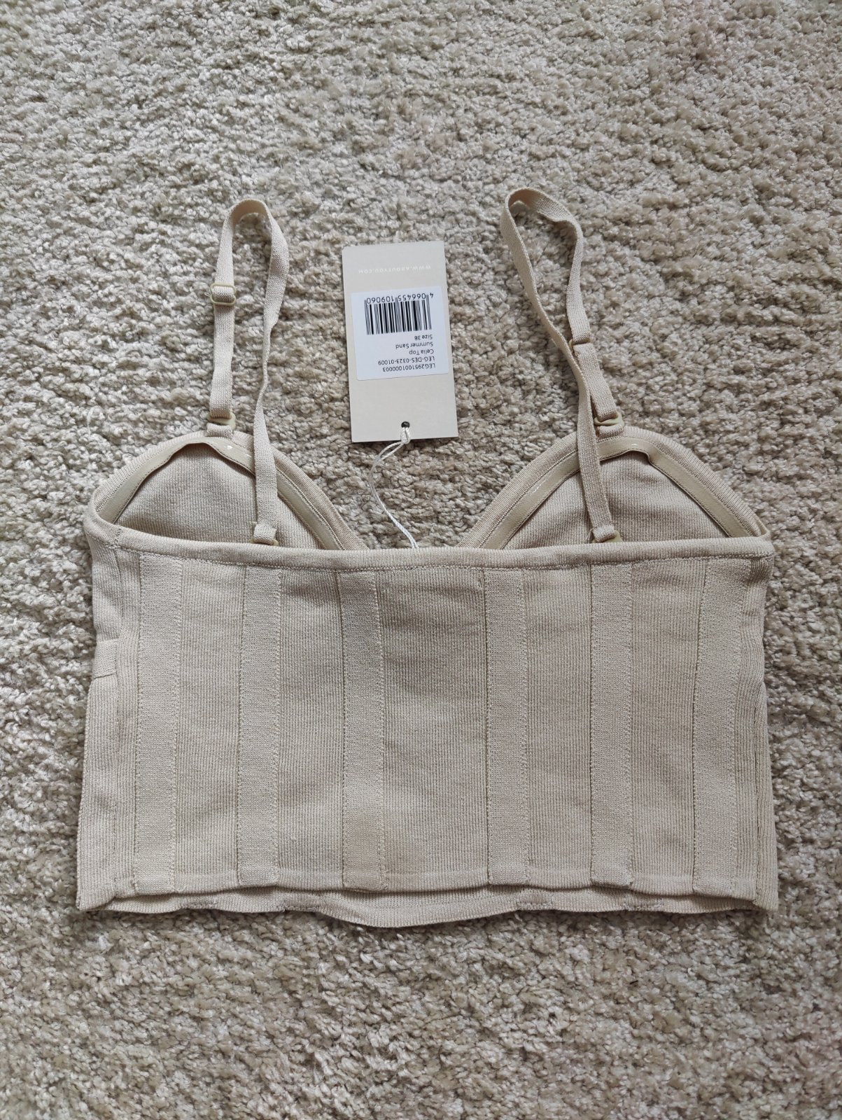 Predám top z úpletu. Materiál je elastický. Rozmery sedia na veľkosť 38. Rozmery: šírka v pokojnom stave 31cm max 47cm. Ramienka sú odopínateľné/nastaviteľná dĺžka. Vrchný okraj je zabezpečený lepiacim prúžkom pre pohodlnejšie držanie na tele.