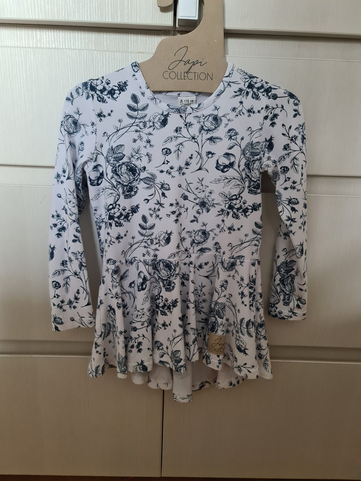 Nadherna tunika v top stave, ziadne poskodenie. Kvietky su tmavomodre. Je napisana velkost 116, ale je skor 110/116.