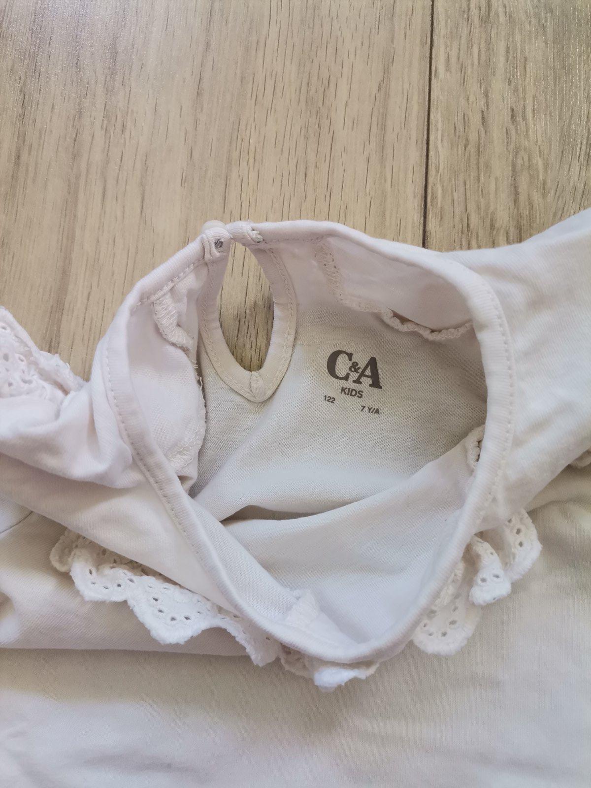 Tričko voľnejšieho strihu značka C&A, veľkosť 122. Kupované nové, raz oprané, nenosené. Vo výbornom stave. Rozmery a zloženie na fotkách.