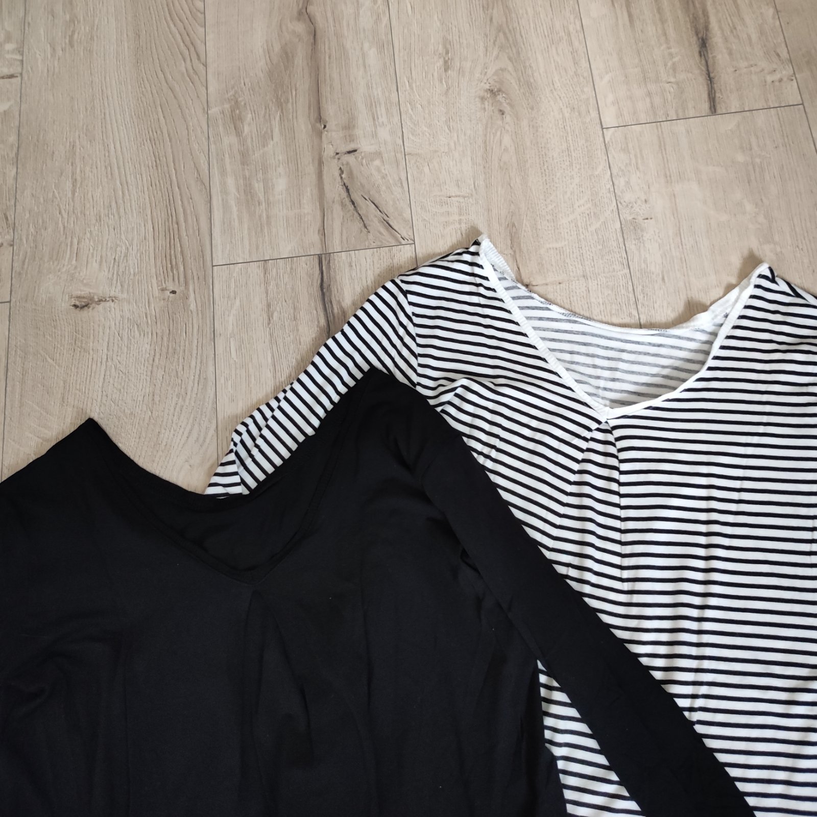 Čierne oblečené raz,čiže ako nenosené a prúžkované viackrát,to je tiež v poriadku len patent okolo krku je taký natiahnutý ale niekomu to nevad,inak farba je pekná sýta -to pridávam k tomu čiernemu,materiál príjemný,voľnejší ,vzadu predĺžený