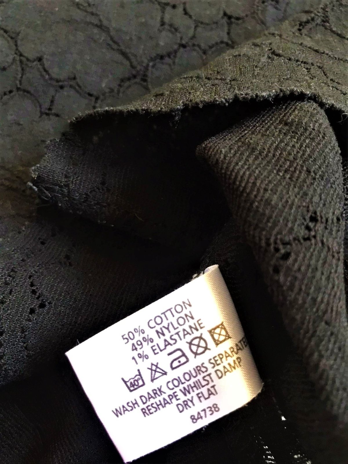 krásne krajkové elastické tričko,kvalitné,málinko nosené,top stav,plytký širší výstrih,krásne ukončenie na spodku,veľmi praktické - nekrčí sa a drží tvar,vhodné aj na príležitostné použitie, aj do kostýmu alebo k dlhej sukni,ale aj na bežné nosenie k rifliam,sýtočierna farba,niektoré fotky robené náročky zosvetlené,aby bolo vidno štruktúru krajky,uvedená veľkosť č.42, vhodné aj na menšie,krásne sa poddá,lebo je elastické,šírka meraná pod pazuchou = 44 ( až do 47 ) x 2 cm, dlžka celkom = 50 cm, dlžka od pazuchy dole = 33 cm