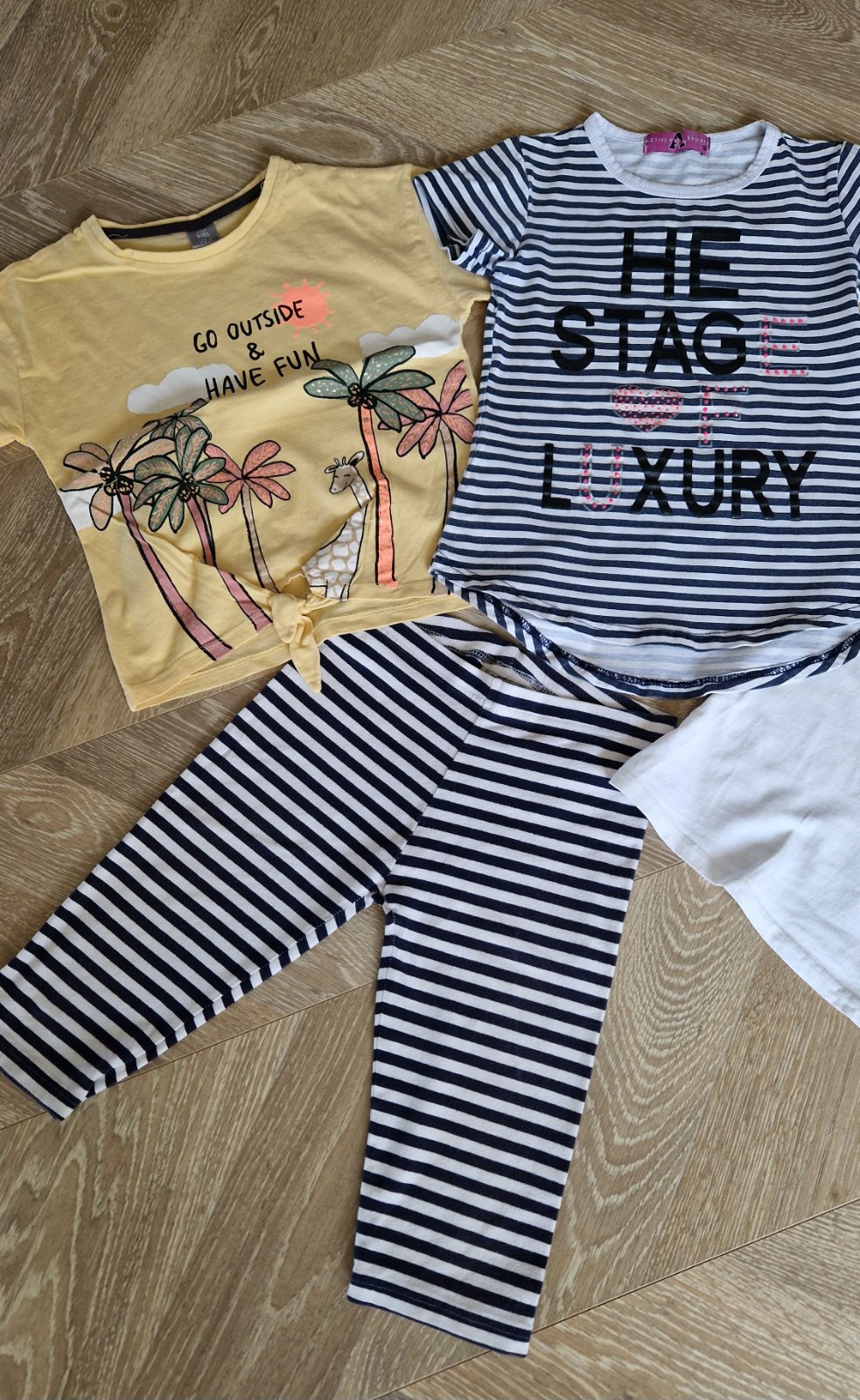 Top stav 2tričká a šortky. Biele tričko je grátis, lebo má 1 jemný fliačik. Vecičky sú ako nové. K cene plus poštovné podľa taríf SP.