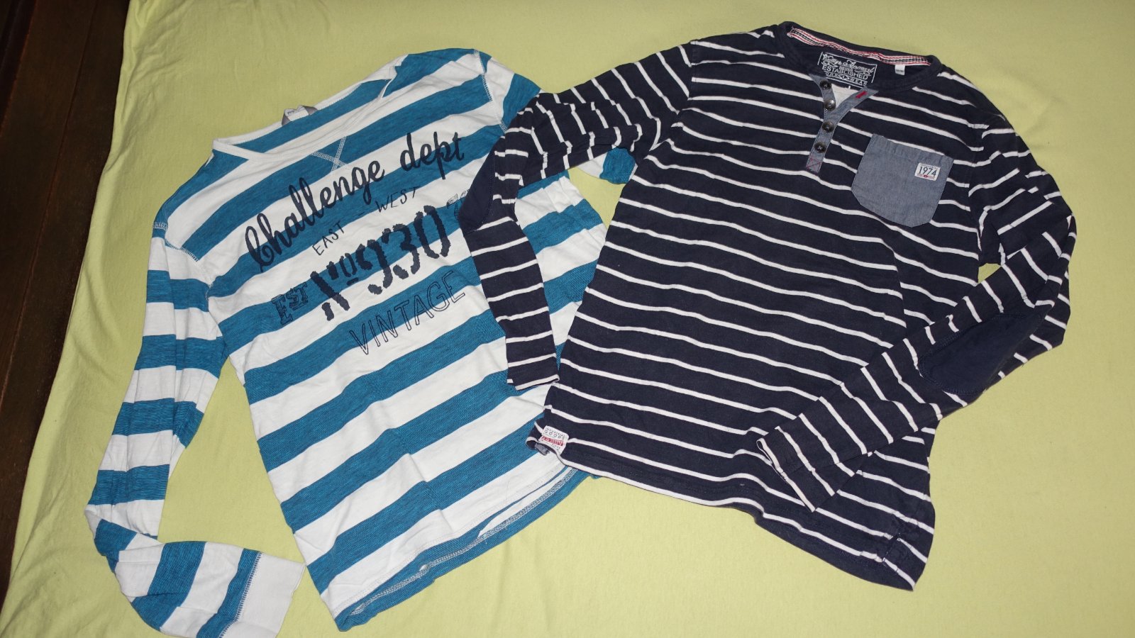Tricka v dobrom stave- to bledsie Lindex ma na rukave dierku. To Lindex je velkost 170, ale synovec nosil obe ako 164.