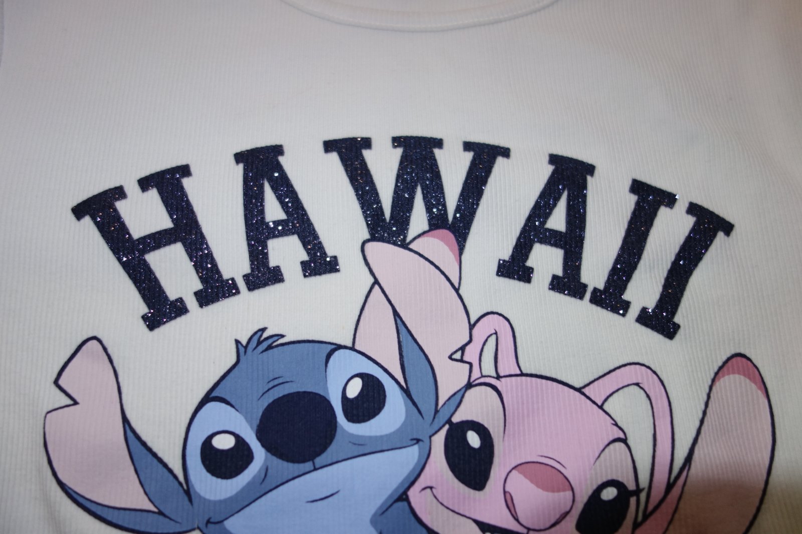 Výborný stav. Krásne tričko s obrázkom Sticha a Angela. Rebrovaný materiál, crop top.