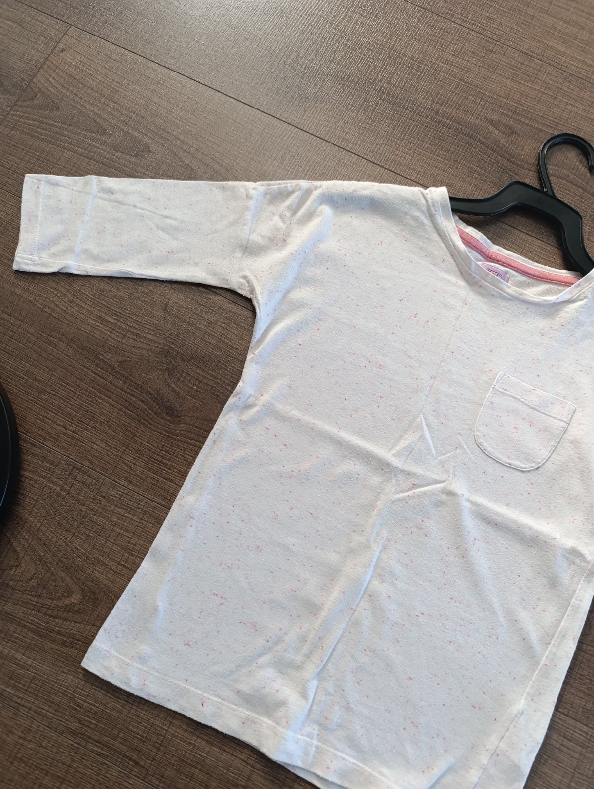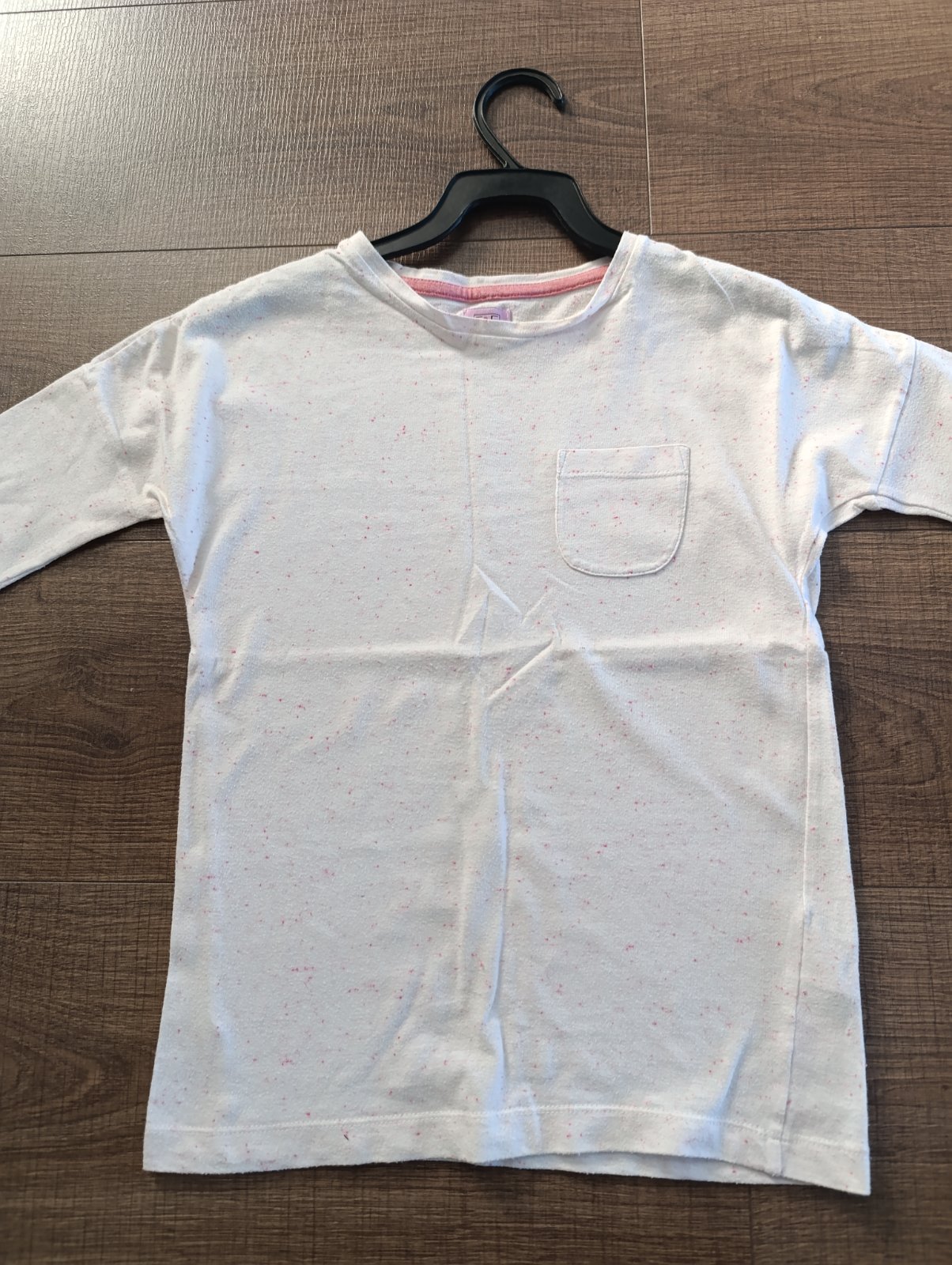 Tričko so vzorom veľ.140/146,pekne Šírka 41,dĺžka 51 v predu kratsie47, rukav50. Cena 3 eura. Biele s krátkym rukávom veľ.146,bielucke,nenosené, Šírka 45,dĺžka 56,cena 4eura Spolu 6 eur.