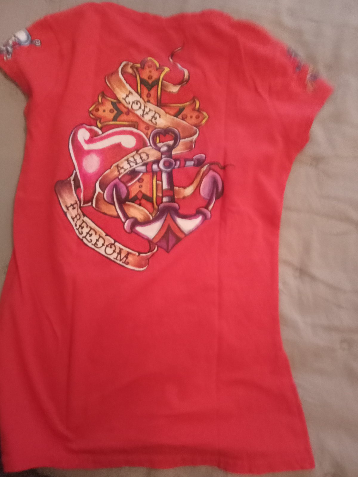 Pribalim k nakupu. Mile tricko, avsak uz vidno nosenie - ma zmolky z prania (vid foto) a kusok sa para sitie na patente (zozadu)