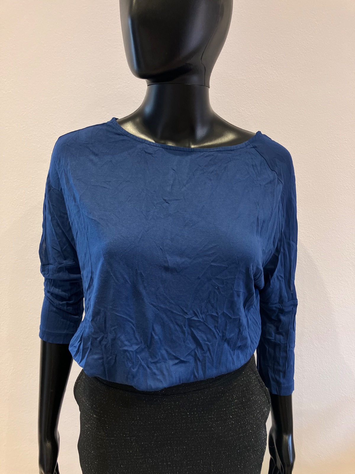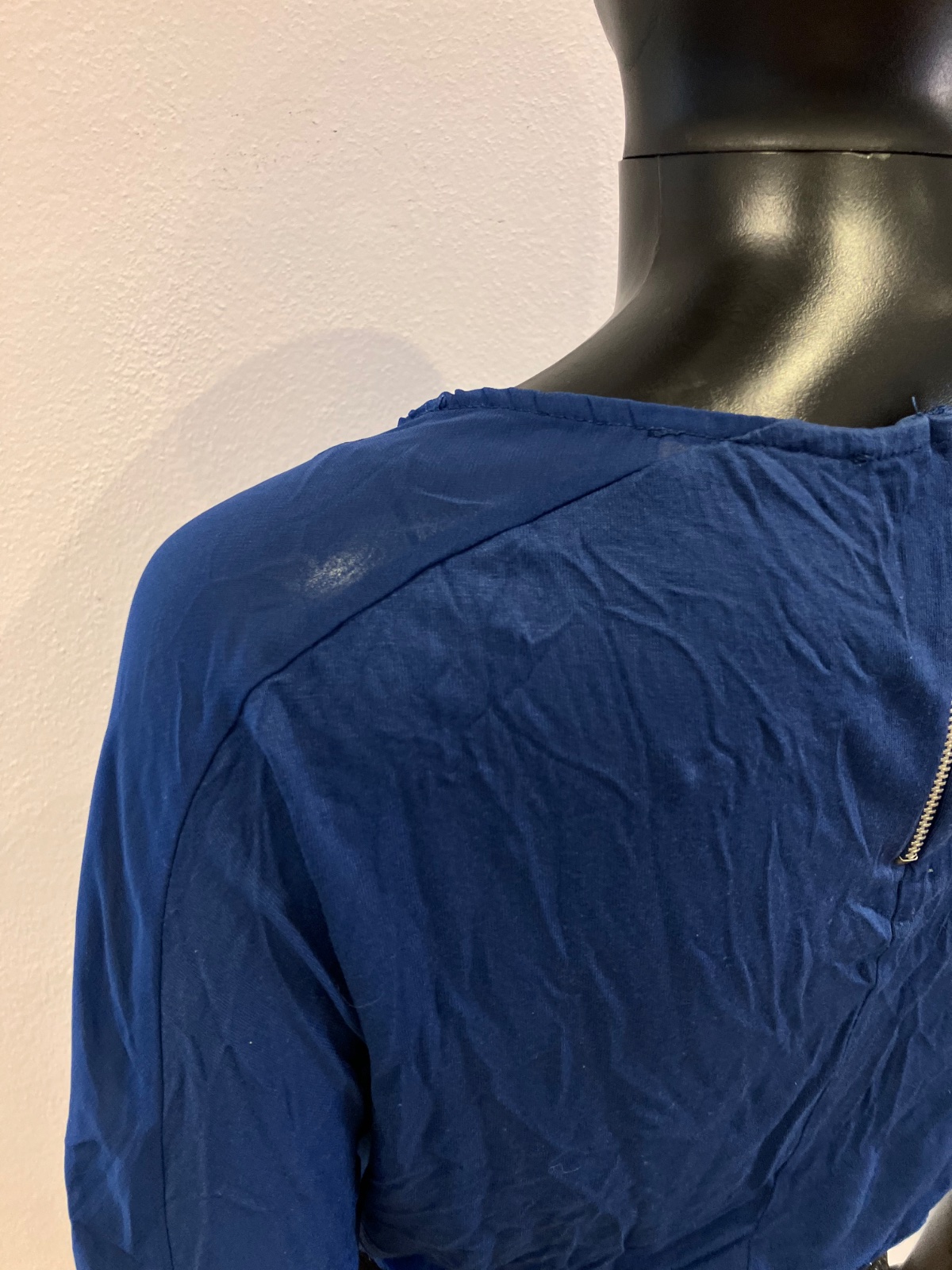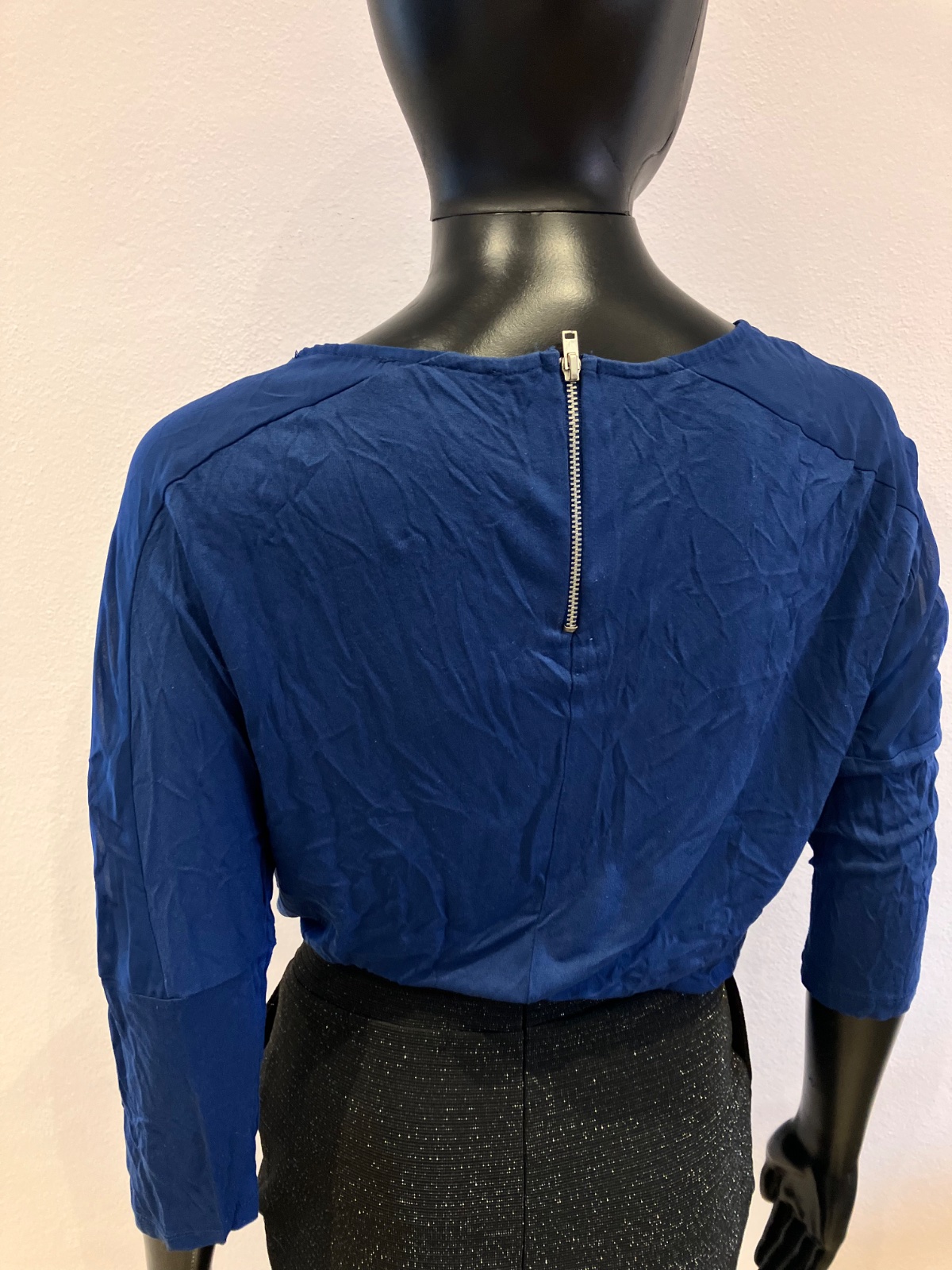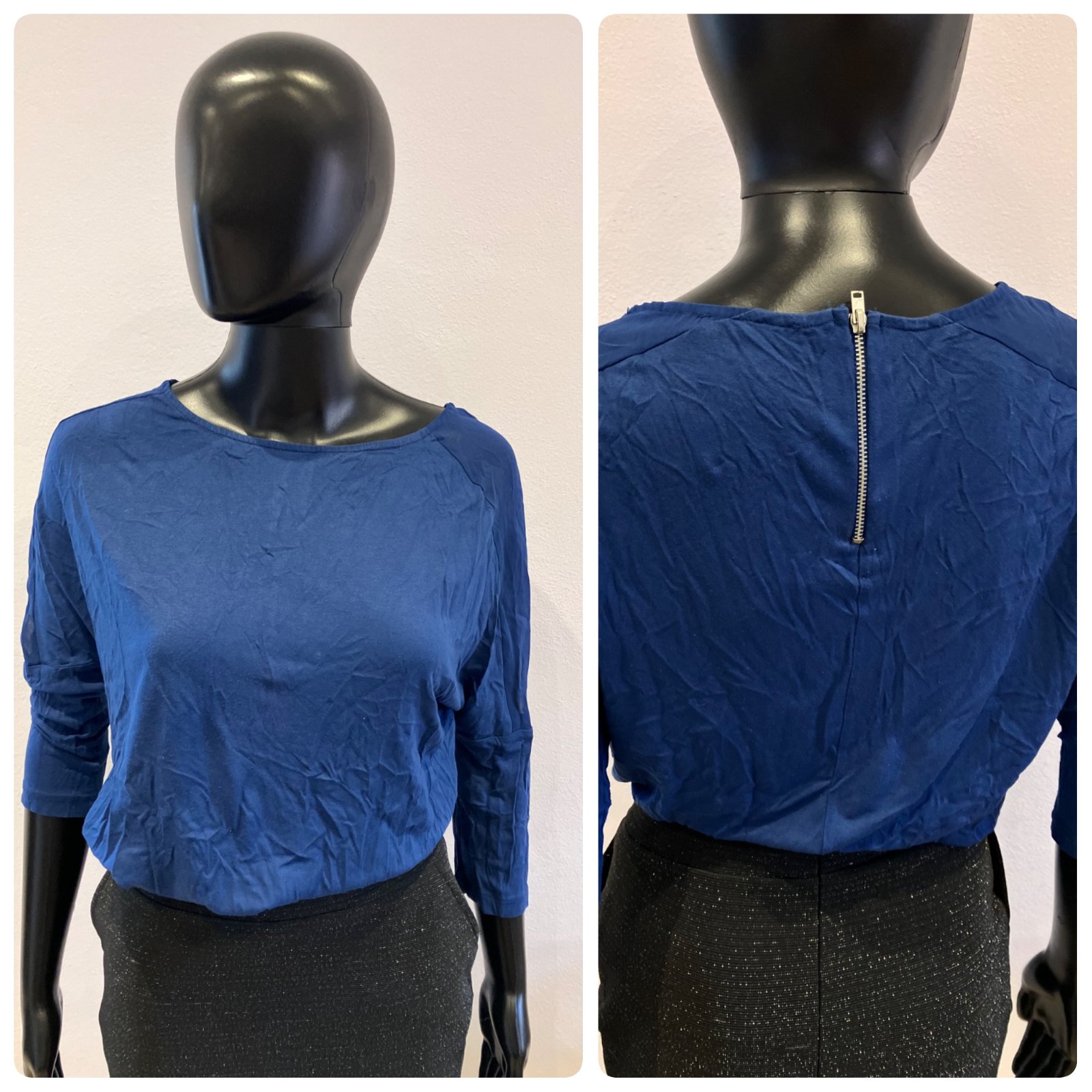 Dámske tričko s trojštvrťovým rukávom, na rukáve tyl, elastické, tenké, zapínanie vzadu na zips. Veľkosť cca M.