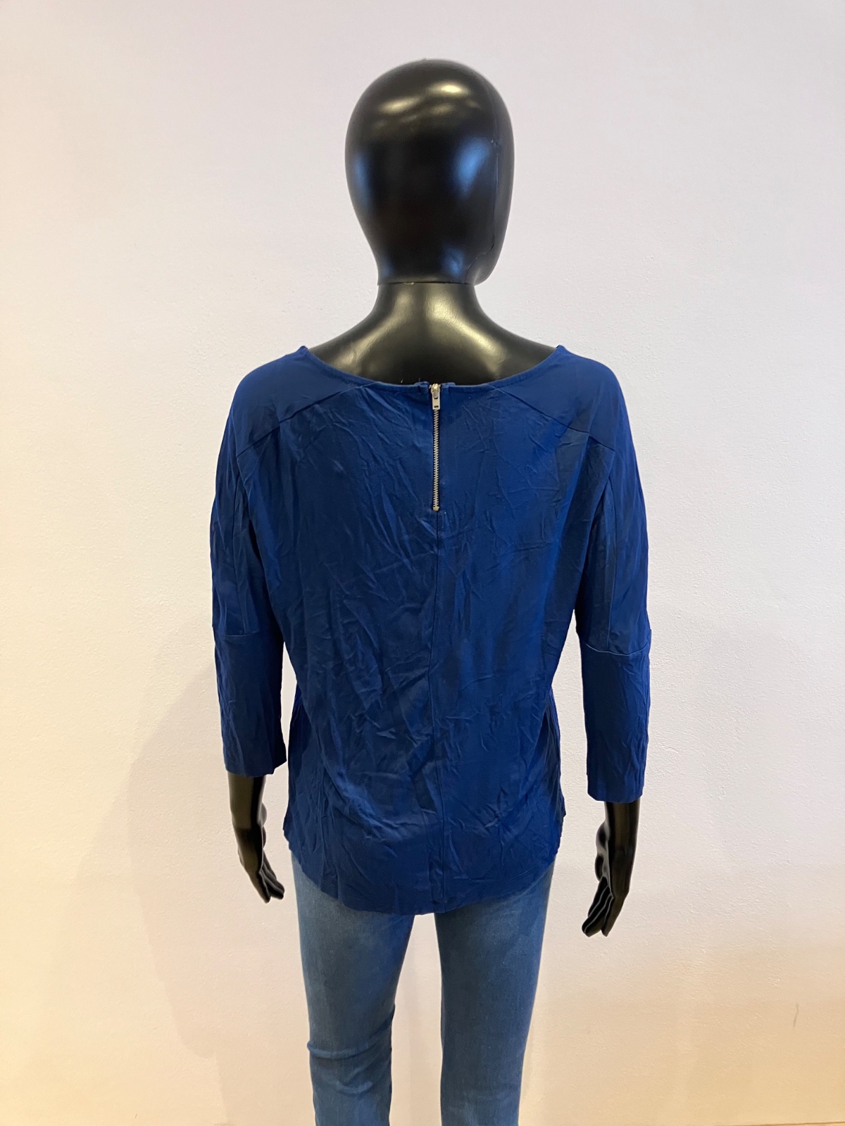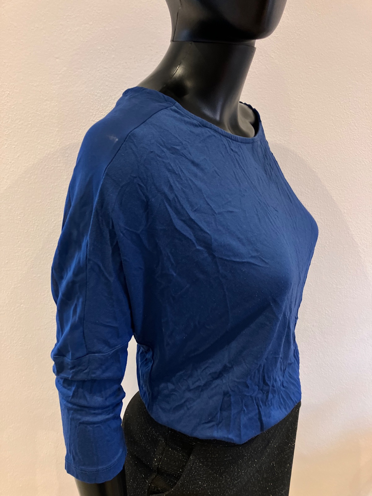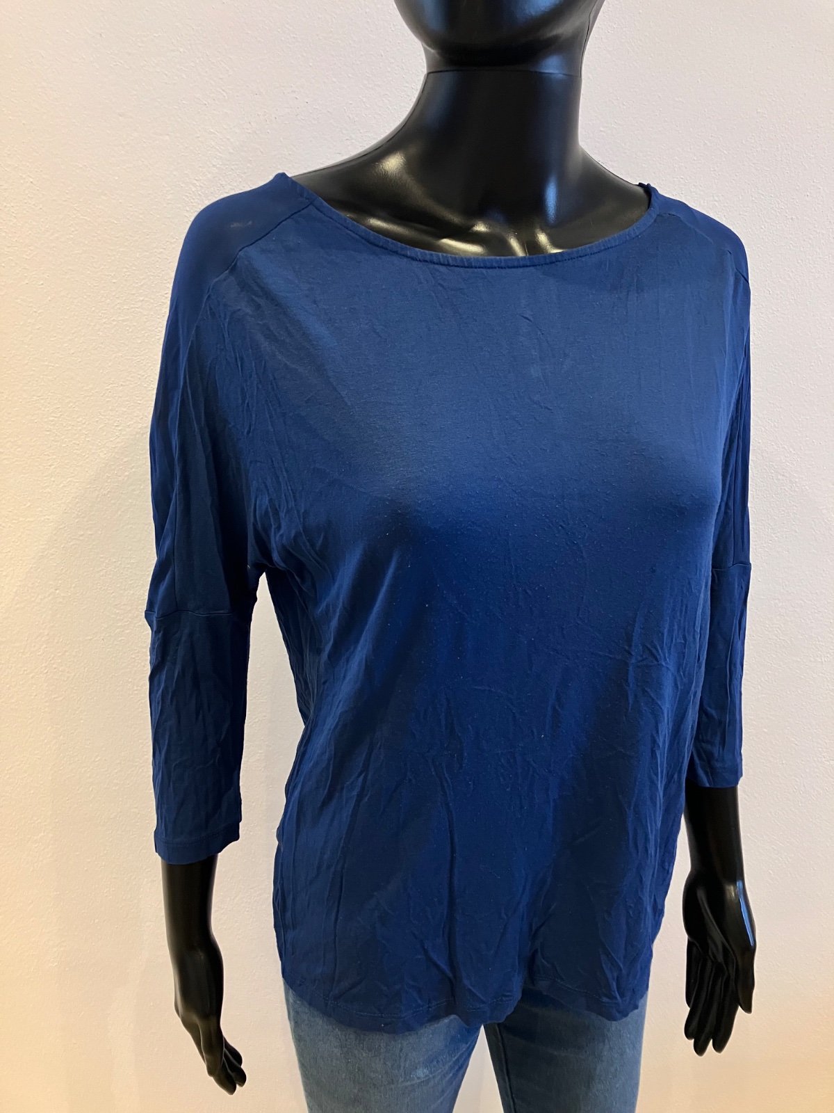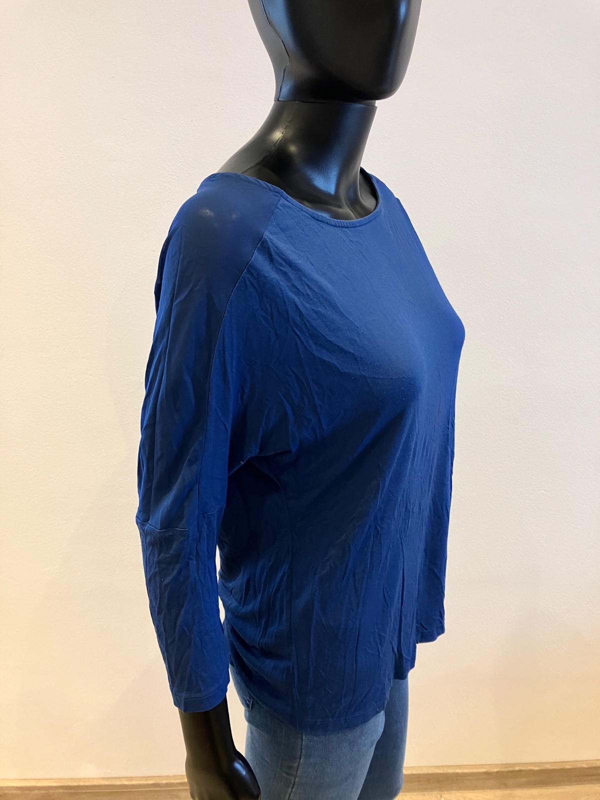 Dámske tričko s trojštvrťovým rukávom, na rukáve tyl, elastické, tenké, zapínanie vzadu na zips. Veľkosť cca M.