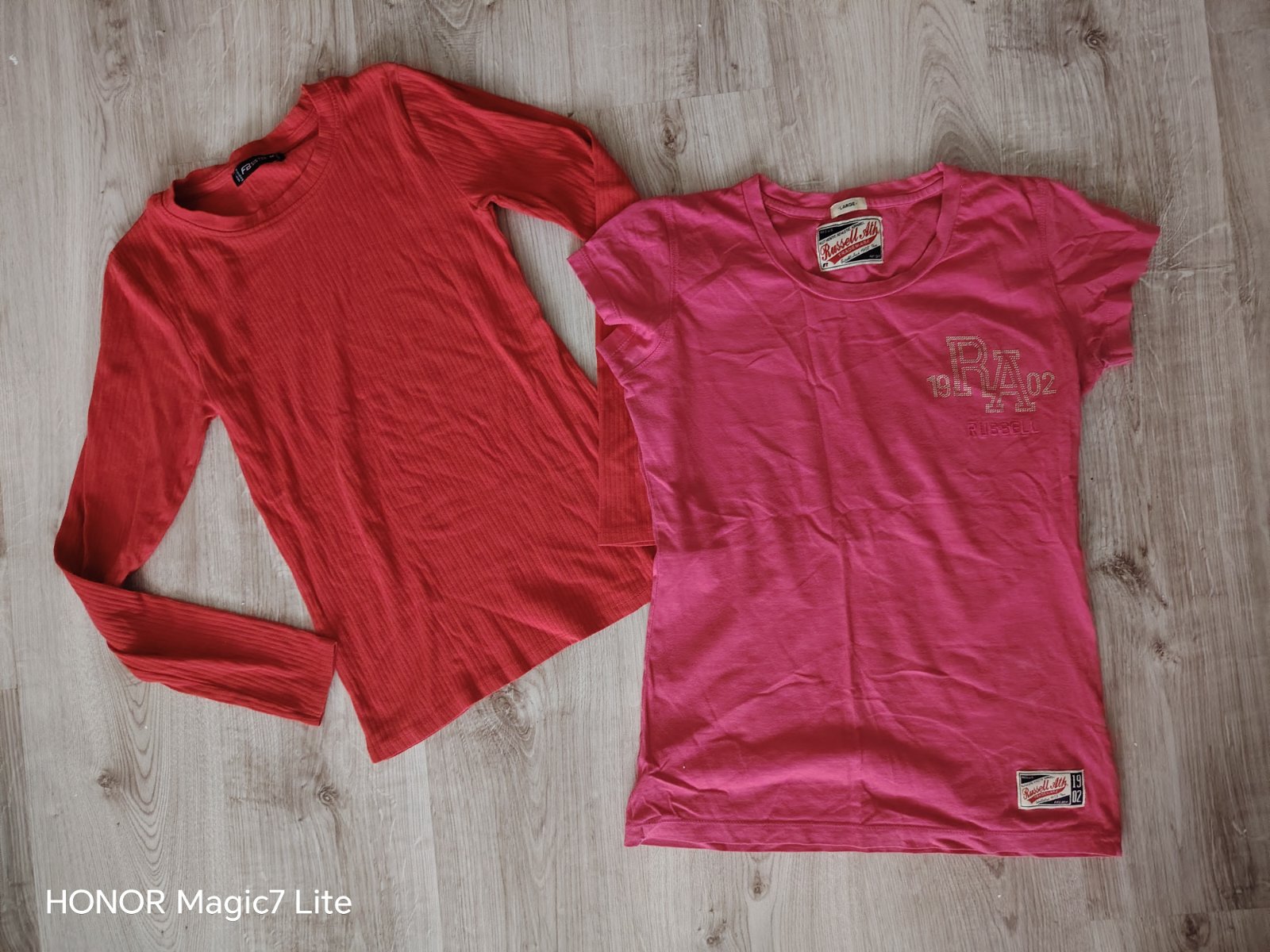 Pekné červené tričko s dlhým rukávom,pár krát oblečené,zaújimavý vačší výstrih a pekná nepoškodená aplikacia.