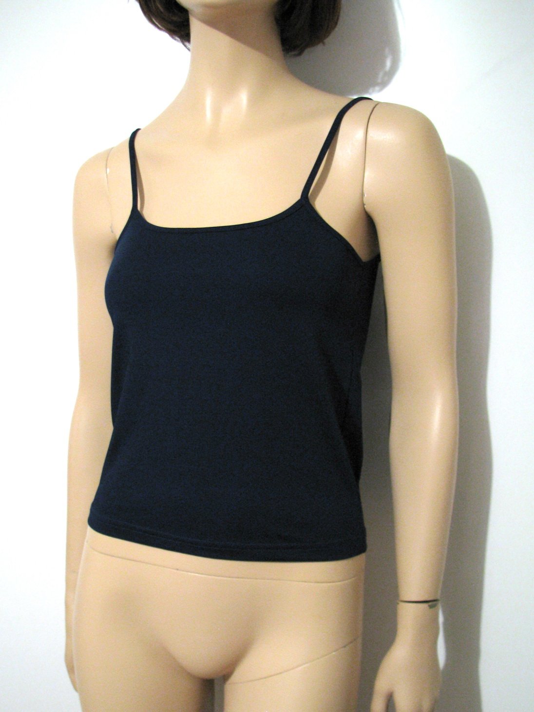 Tmavomodré elastické tielko. Materiál odhadujem ma polyester. Výborne zachovalé, bez poškodení. Veľkosť S, v prípade záujmu premeriam.