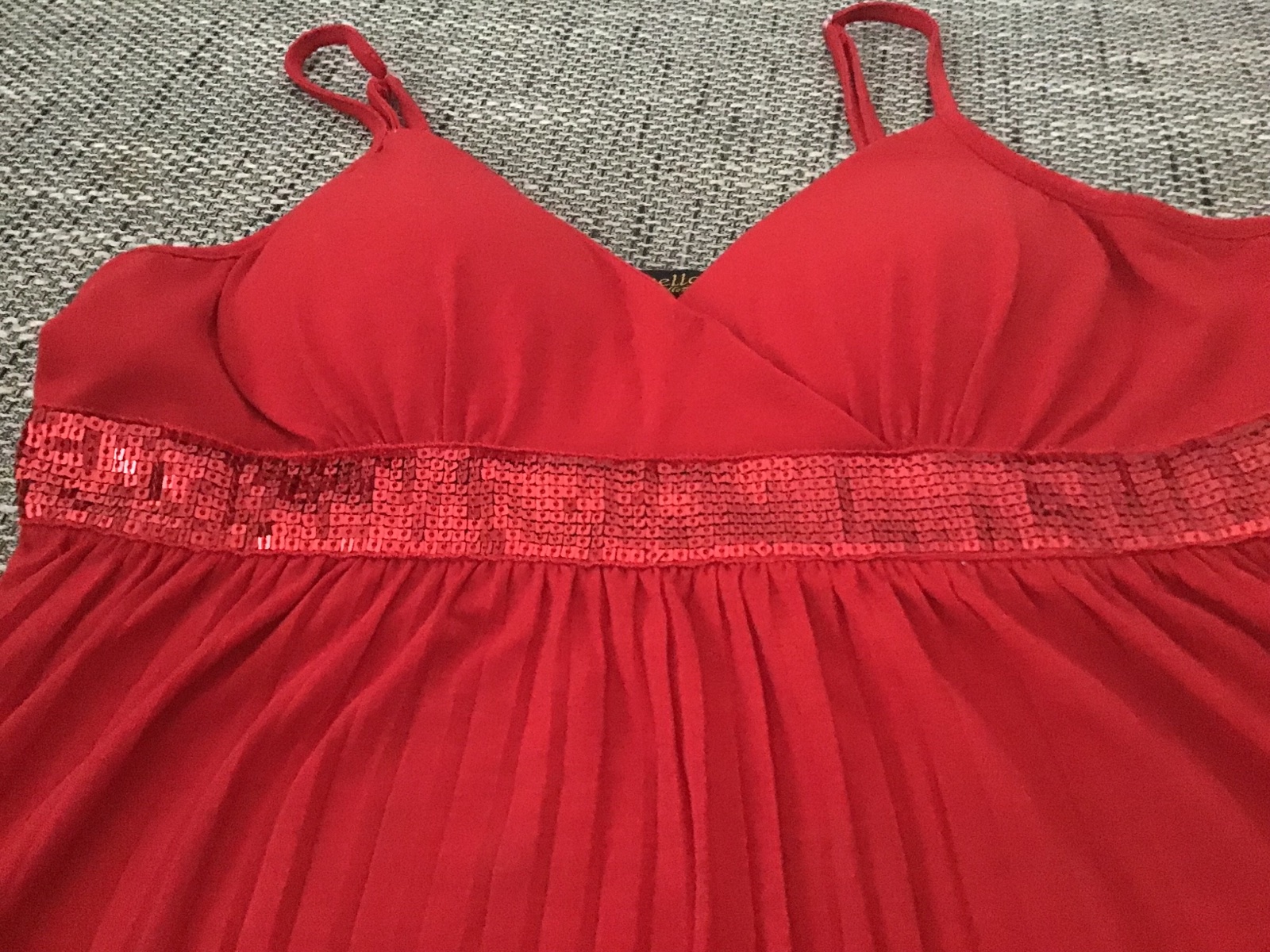 Malo nosene, šírka cez prsia cca 83 cm, dĺžka bez ramienok cca 66 cm, ramienka sa dajú posúvať, na prsiach vystužený