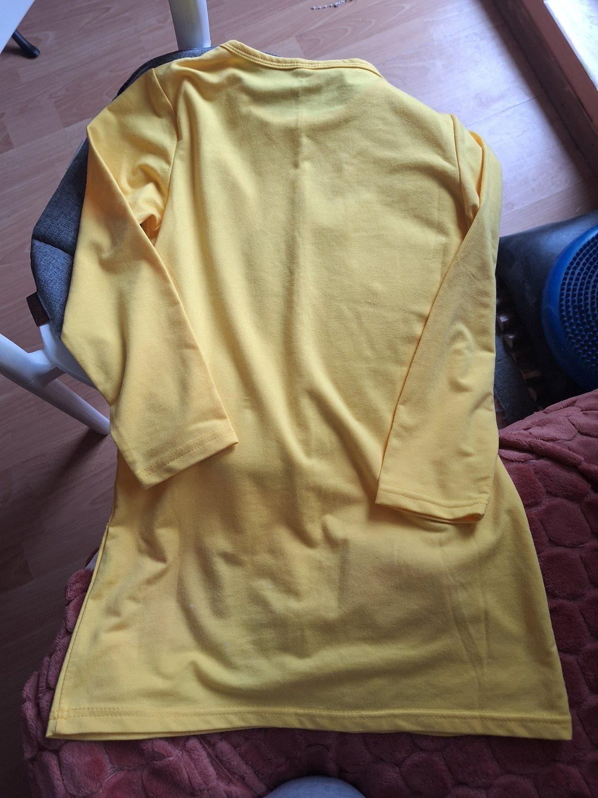 Predám dievčenské mikinové šaty, bavlna, dlhý rukáv, vpredu s motívom srnky s mašličkou a dve malé vrecká, materiál nie je hrubý, k legínam veľmi pekné, veľkosť písaná 150, v prípade potreby zmeriam rukáv, či dĺžku. Sú zachovalé, veľmi pekné, a aj farba je pekná žltá. cena 5,-€ plus poštovné