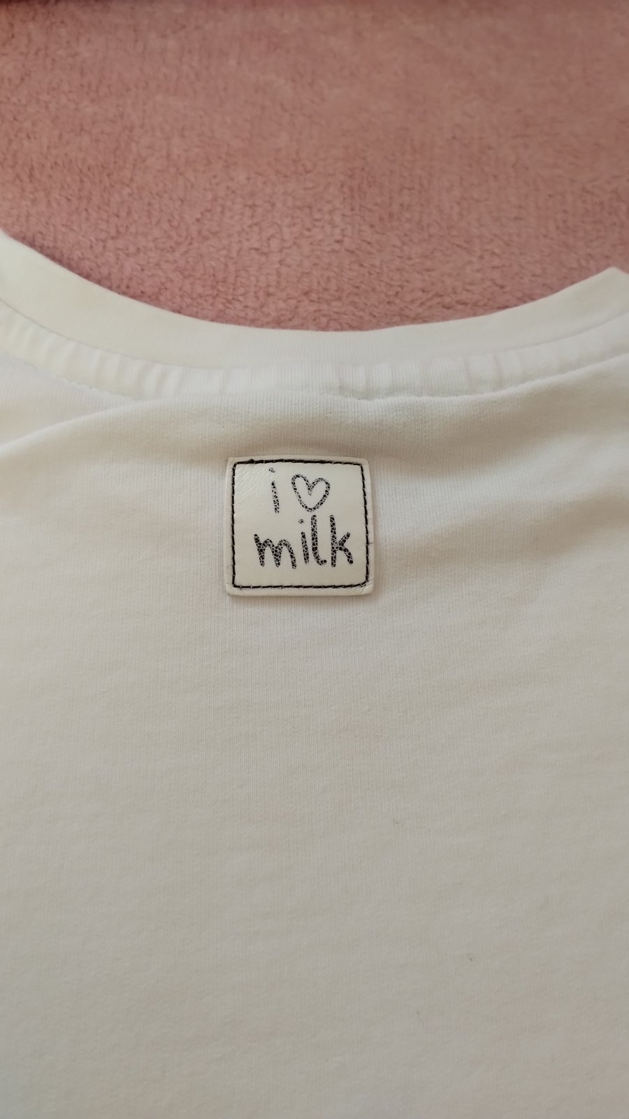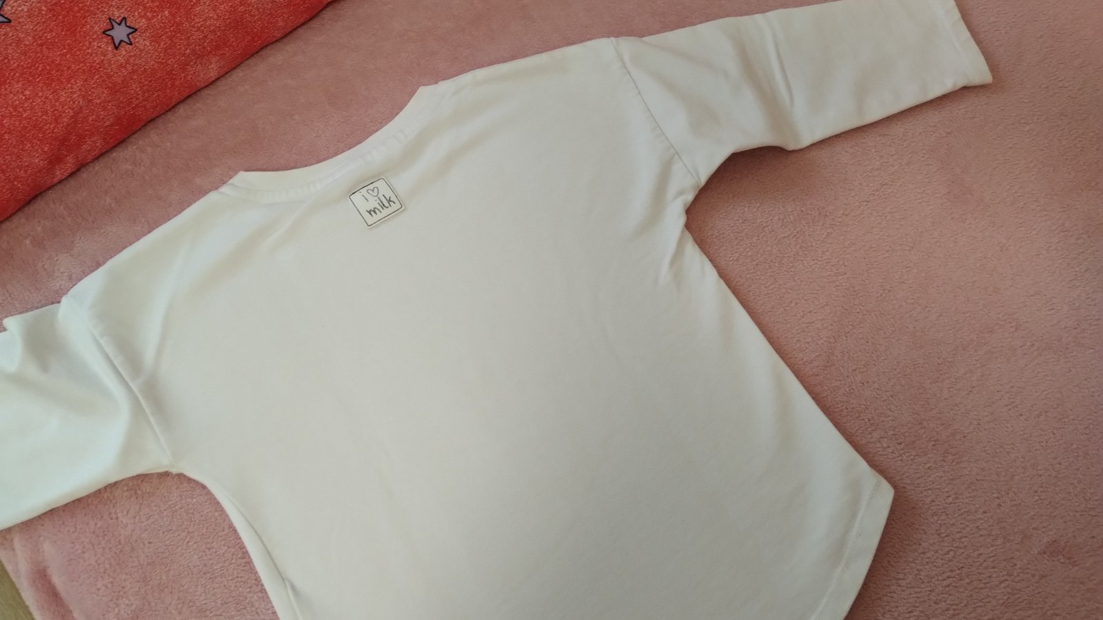Tričko nemá žiadne fľaky, pri krku je ozdobené madeirovou čipkou. Zadná časť je o 3 cm predĺžená, tričko je A-čkového strihu. Rozmery: výška prednej časti 38 cm, dĺžka rukáva 31 cm, šírka pod pazuc...