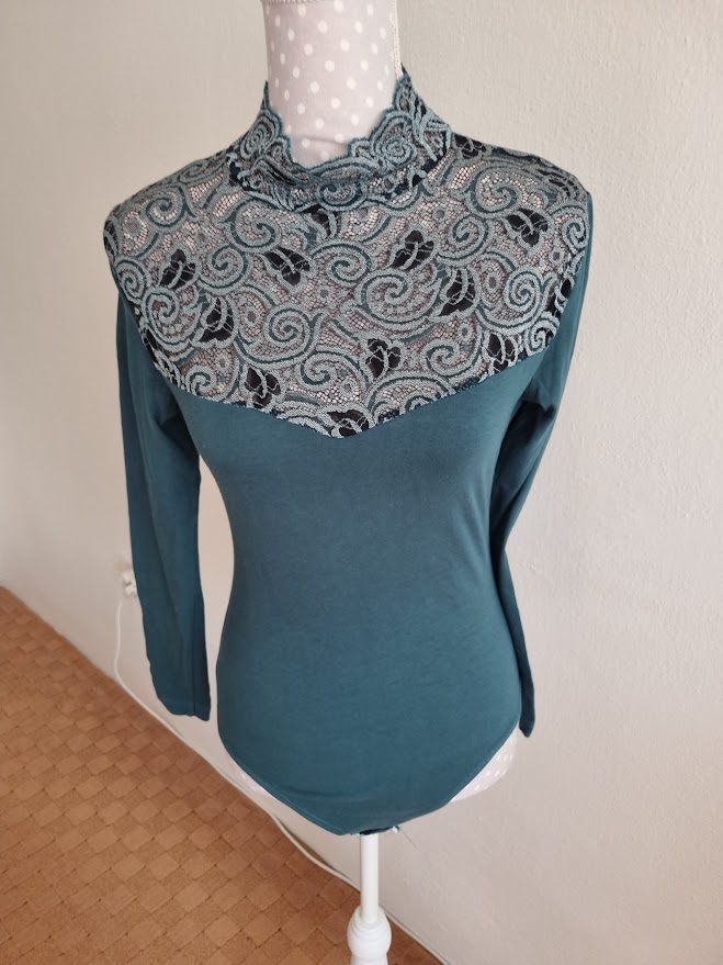 fľaškovozelené, elastické, čipka tiež, oblečené raz na pol hodinu