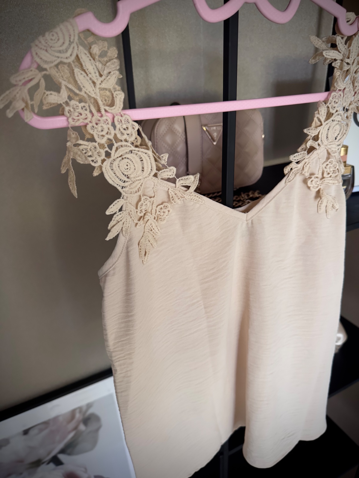 Béžový letný padavý top, s krásnymi krajkovými ramienkami. Bez chybičky v top stave.