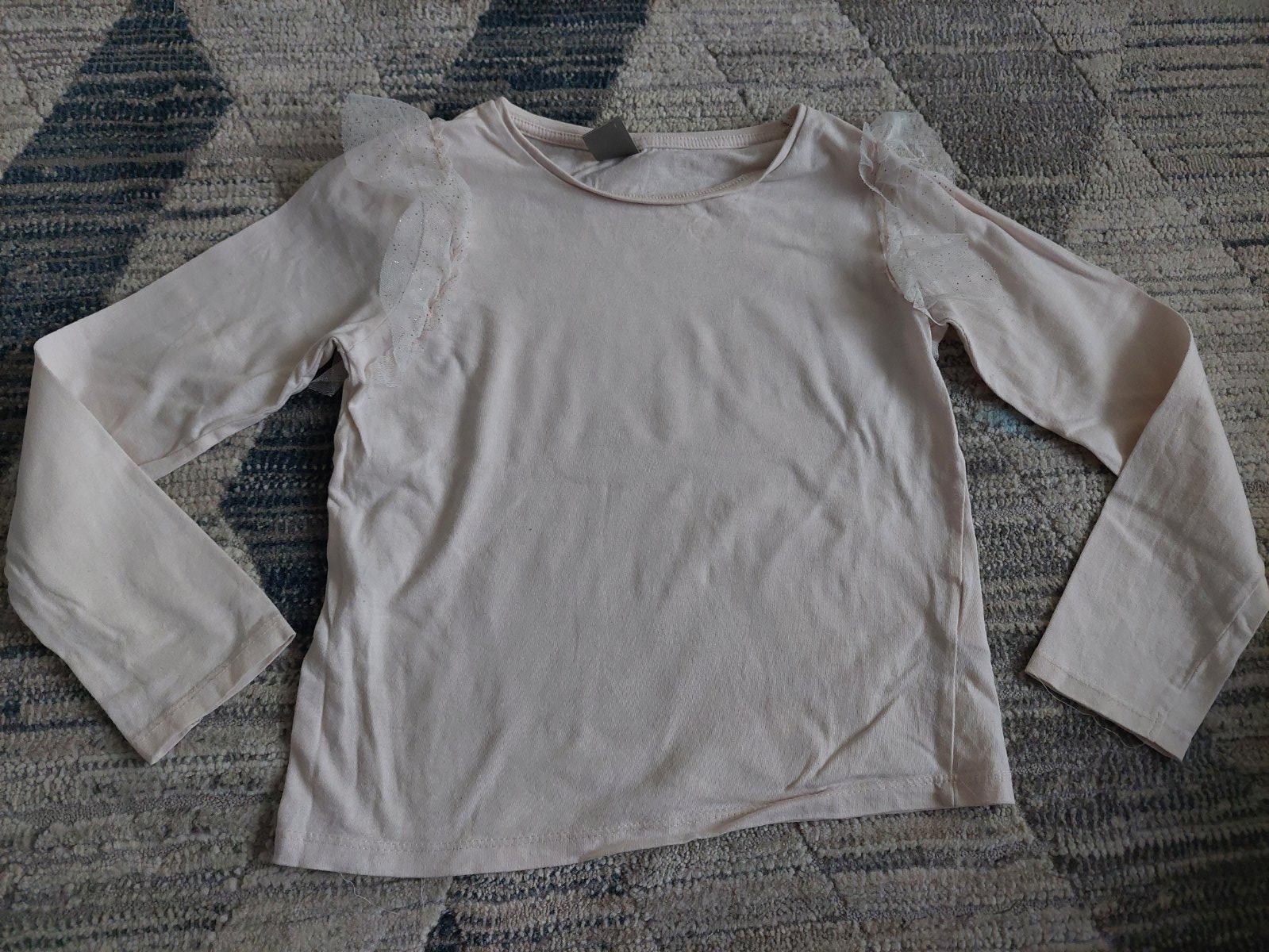 ruzove, bodka od pera na rukave, v. 128 s mackou v. 134, sedi skôr na 128, bodka od pera na rukave biele v. 134, skor 128, bez poskodeni az na tie popisane bodky pekny stav. cena spolu