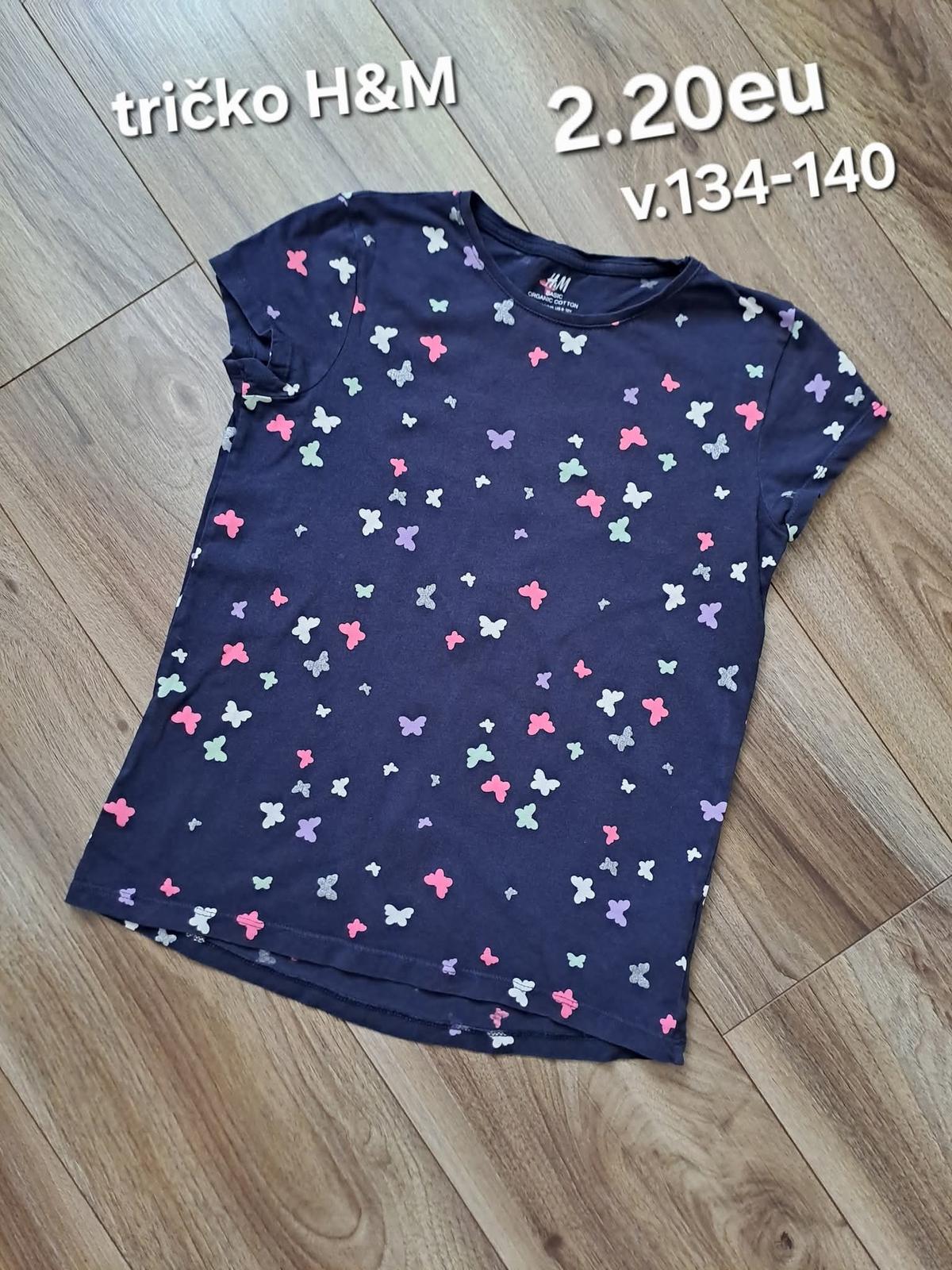Dievcenske tricko H&M vel. 134/140 kolekcia Organic cotton, tmavomodre s bledymi bodkami, dlzka 48 cm, 95% bavlna + 5% elastan, super stav