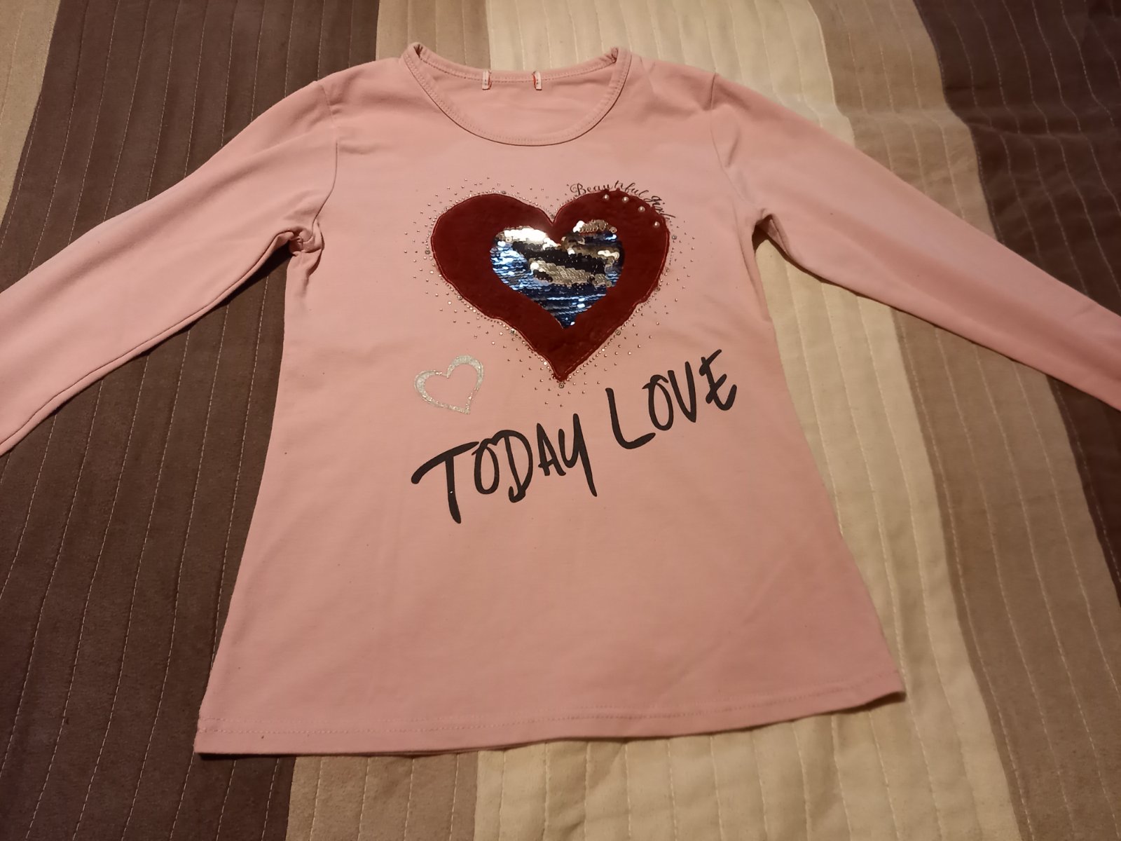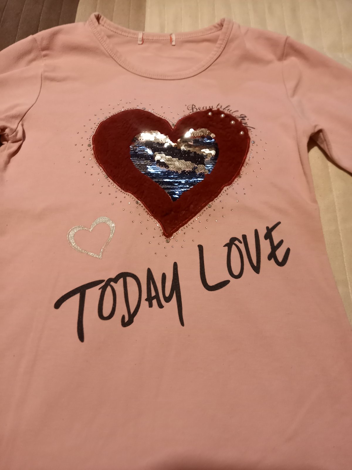 Ružový top s pekným motívom pre 10-12 ročné. Veĺmi dobrý stav. Č.140-146. Cena 4eu