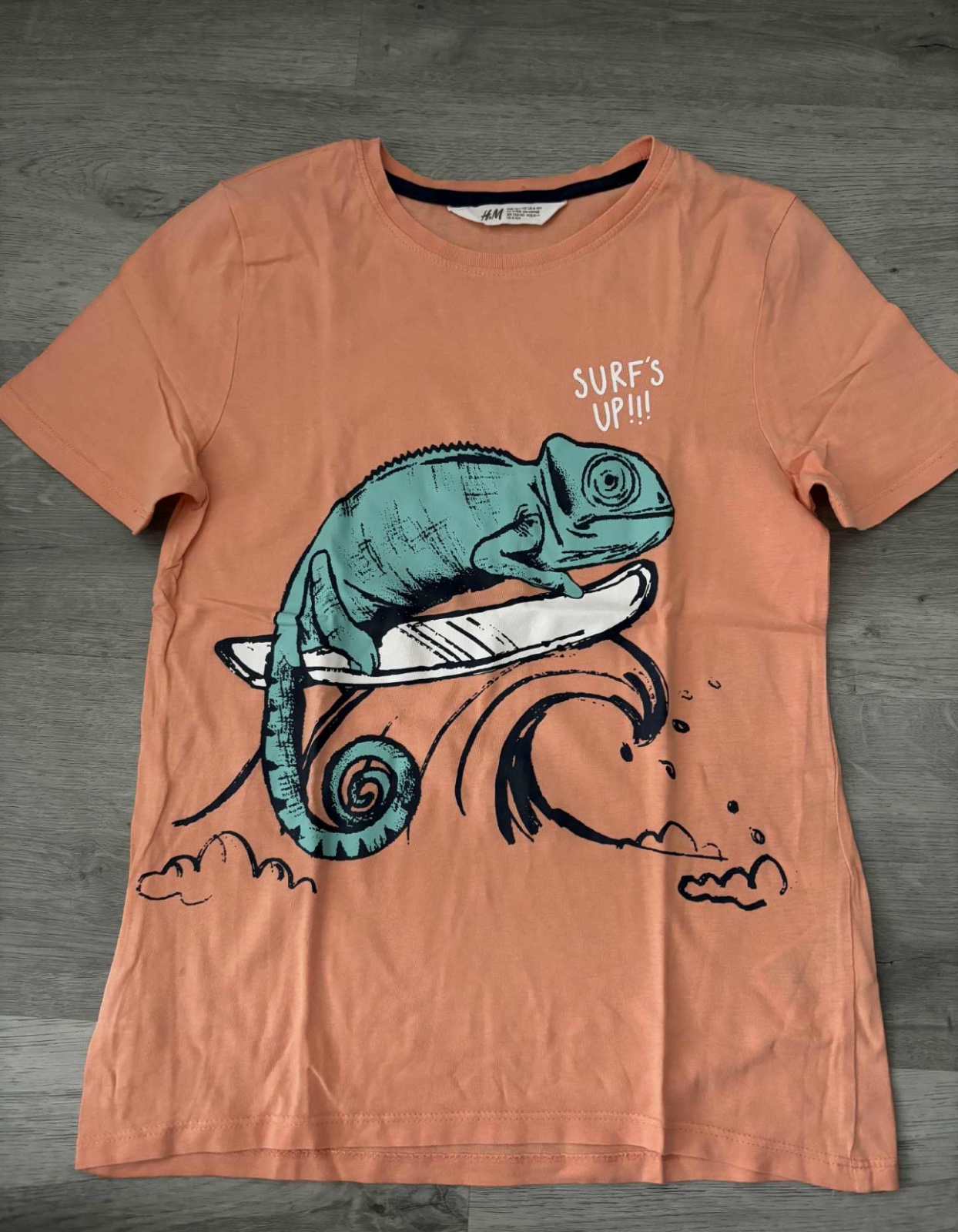 Predám tričko zn. H&M, veľkosť 134/140. Sýta farba, bez žmolkov. Malá dierka (viď foto). Cena 4€ + poštovné