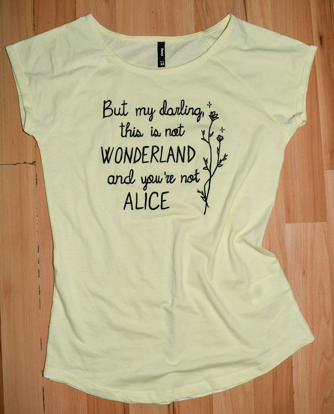 je obtiahnutejšie veľkosť XS..ručne maľované odporúčam prať na ručnom praní alebo max do 30°C..preklad je: