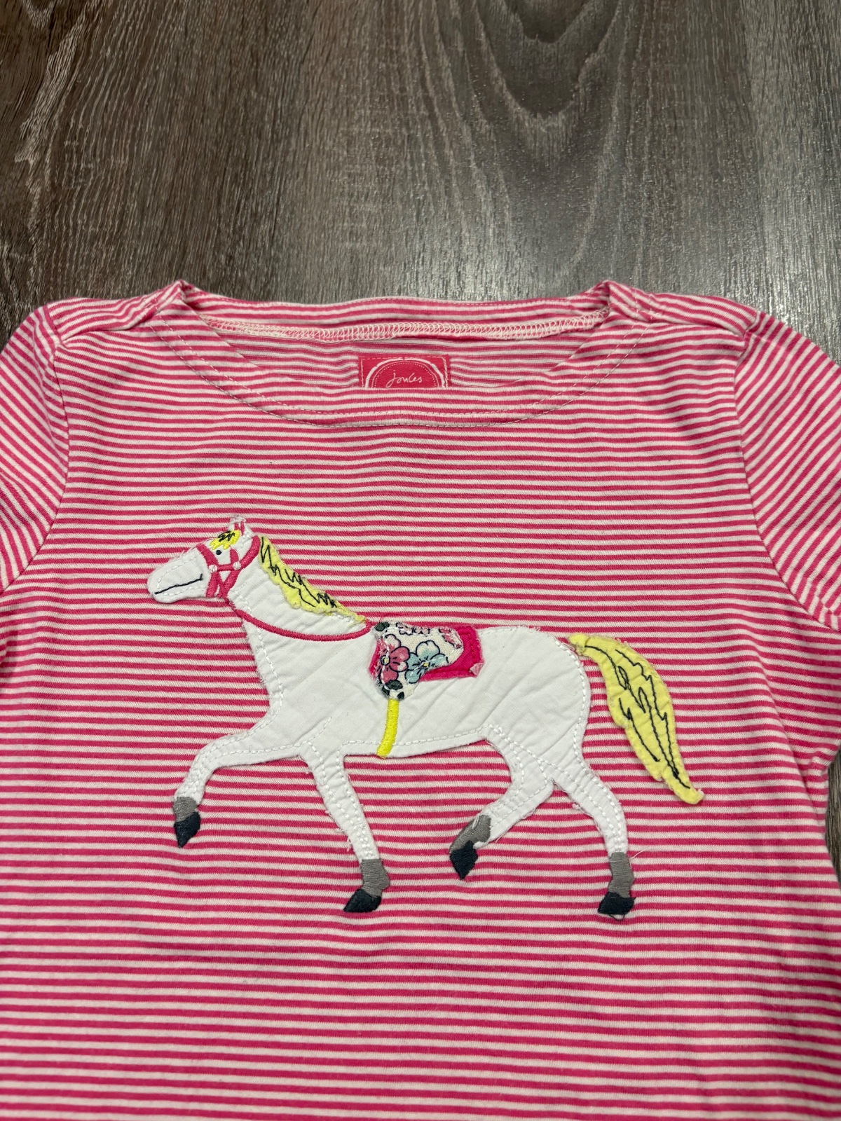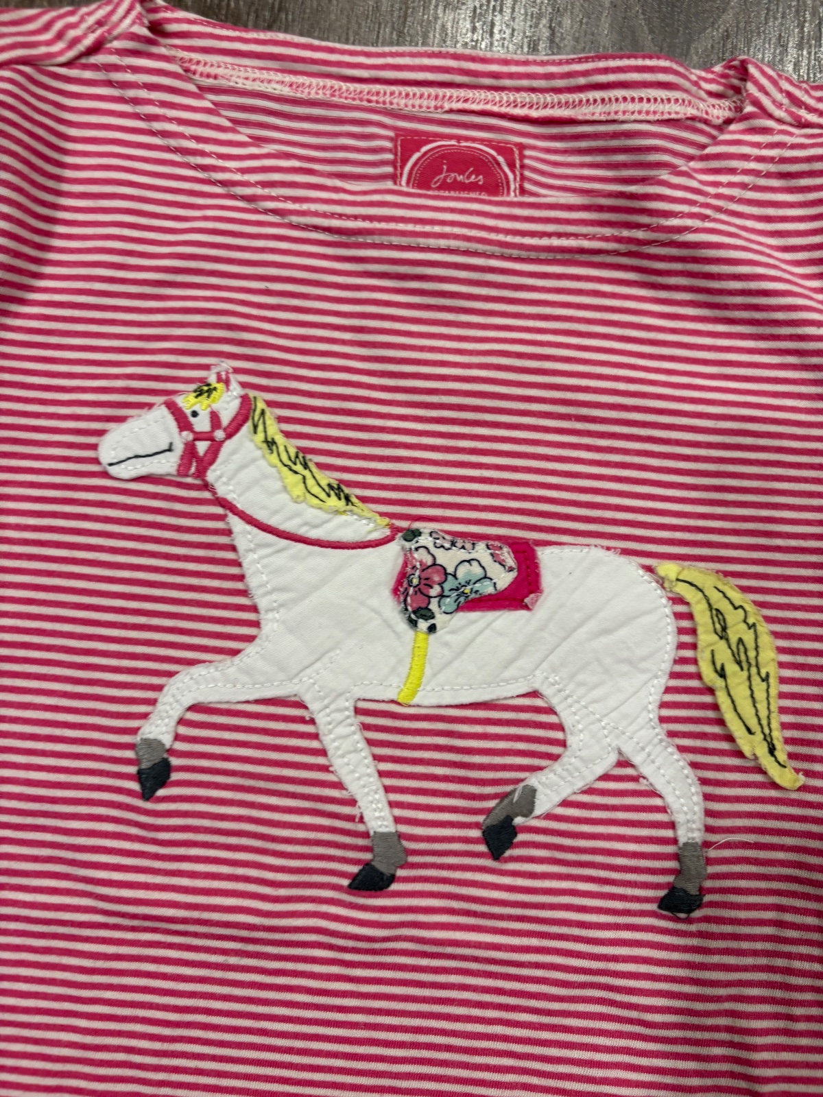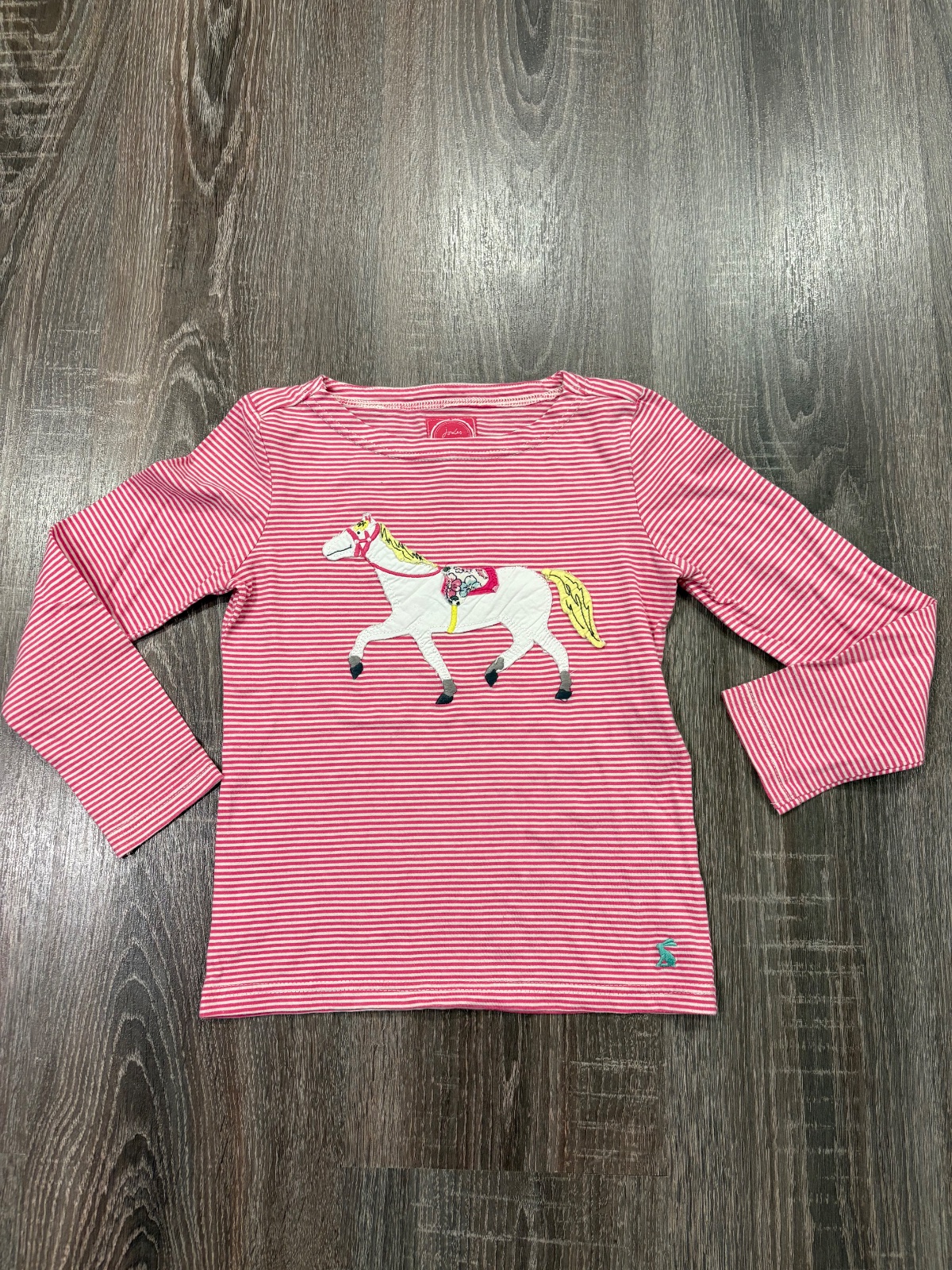 95.Joules dievcenske pasikave tricko s konikom,velkost 6 rokov,dlzka je 42cm,dlzka rukava od krku je 47cm a sirka v podpazusi je od 32x2cm do 37x2cm