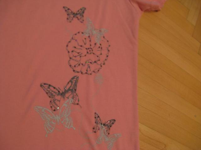 ponúkam na predaj pekné tričko s motýlikmi, sú na nich ponašívané flitríky, velmi dobrý stav, je z príjemného materialu, kúpu neolutujete!