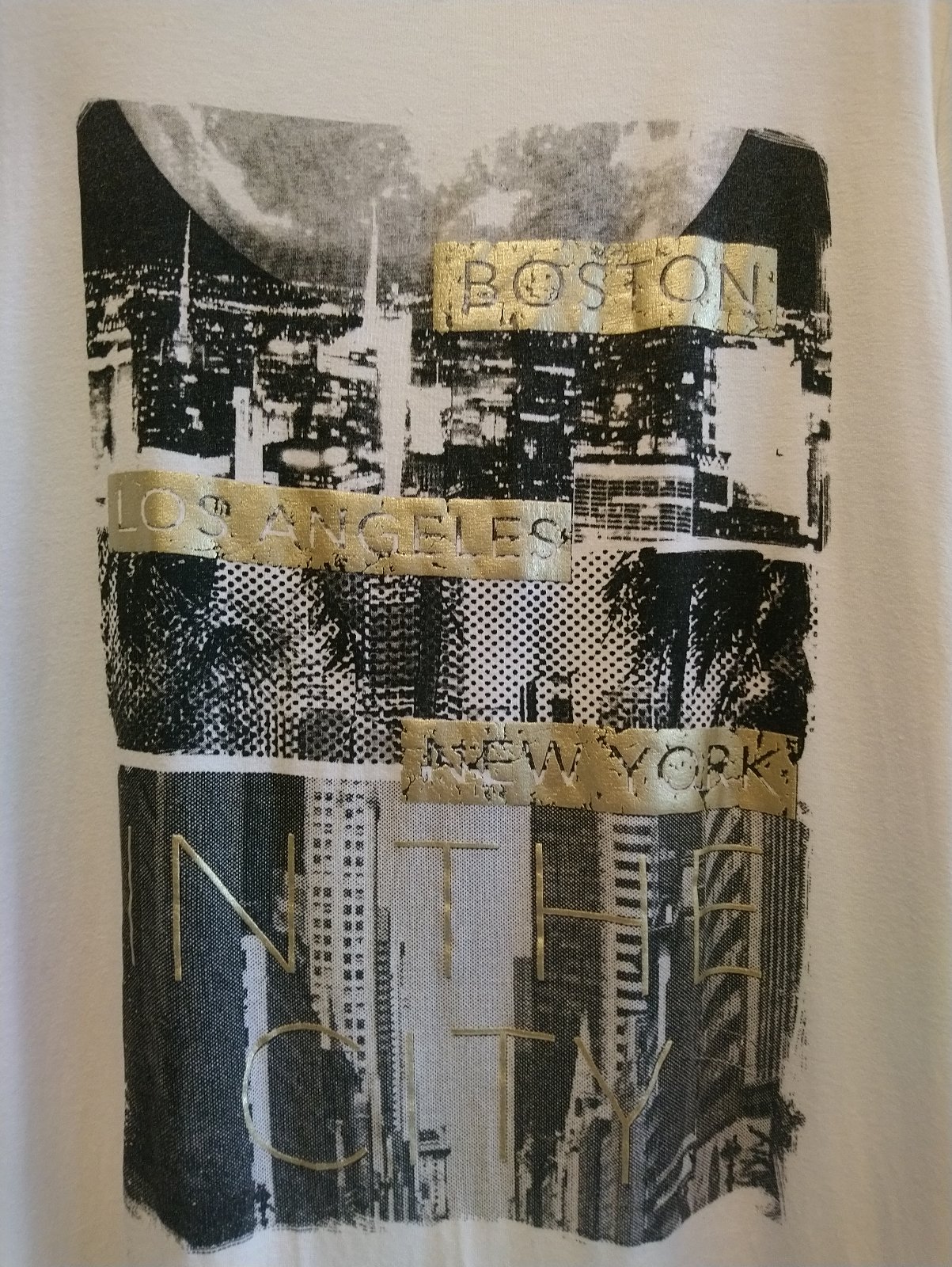 dámsky predĺžený elastický biely top s motívom, 3/4 rukáv,