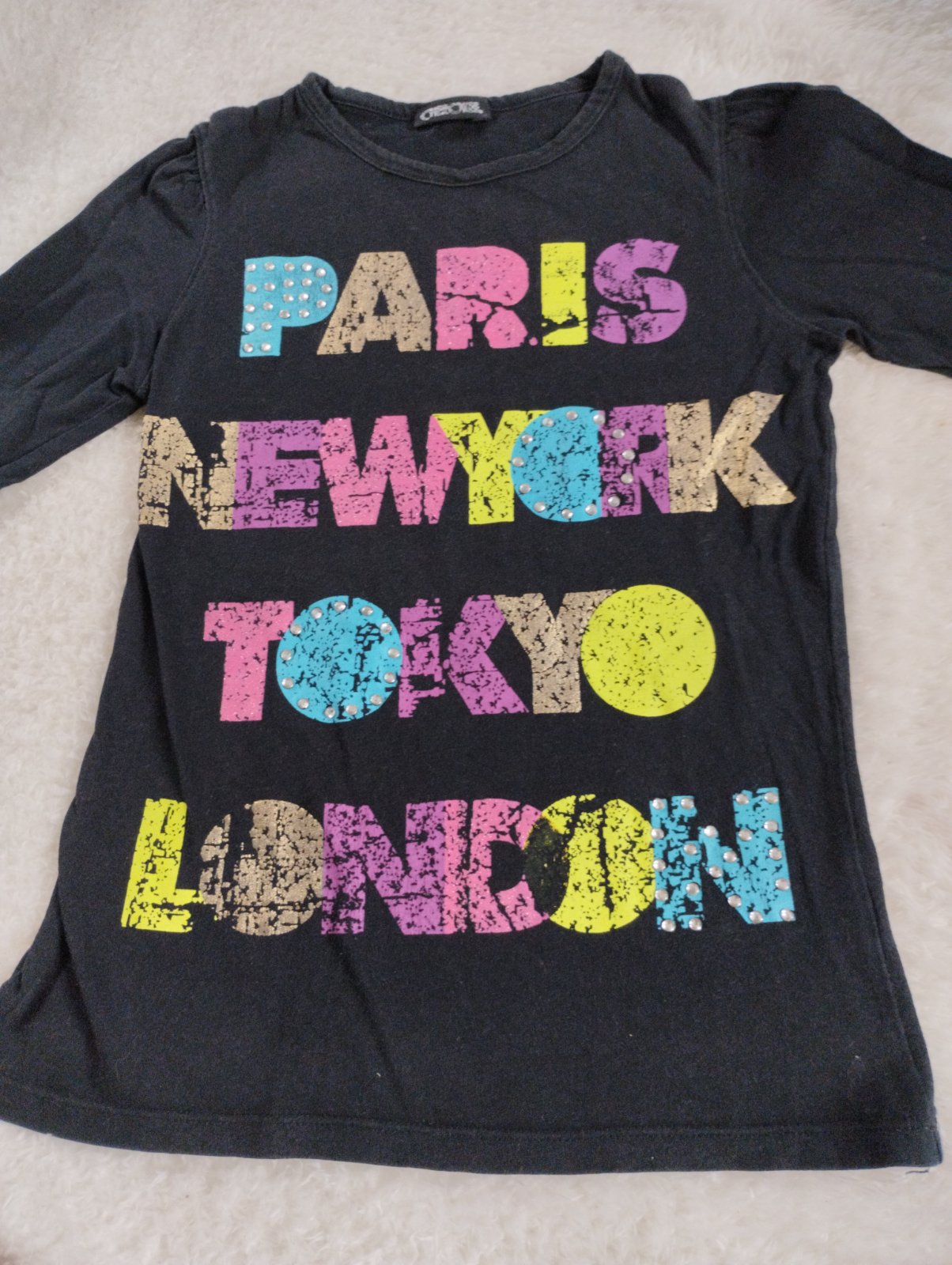 Predám tričko s 3/4 rukávmi, velkost 122. Na ramenach sú flitre. Dĺžka vpredu 50 cm, vzadu 52, 5 cm, šírka pod pazuchami 31 cm, dĺžka rukavu 27 cm.