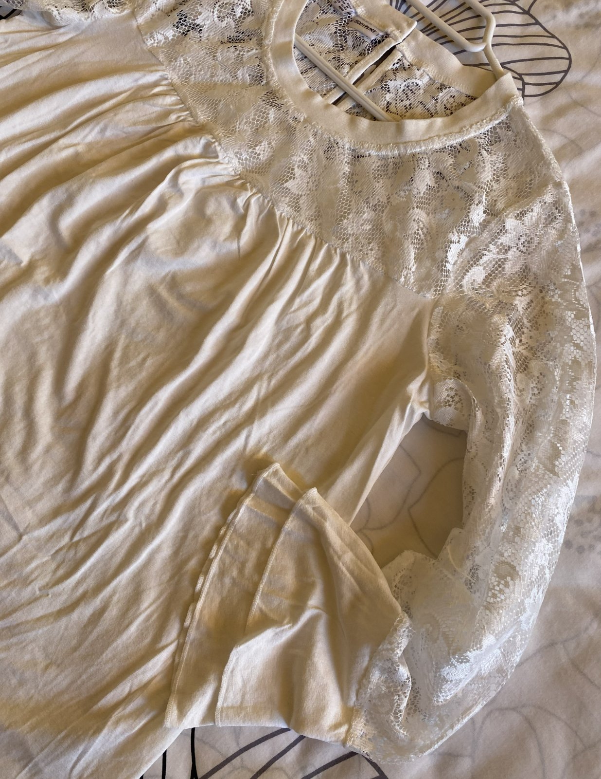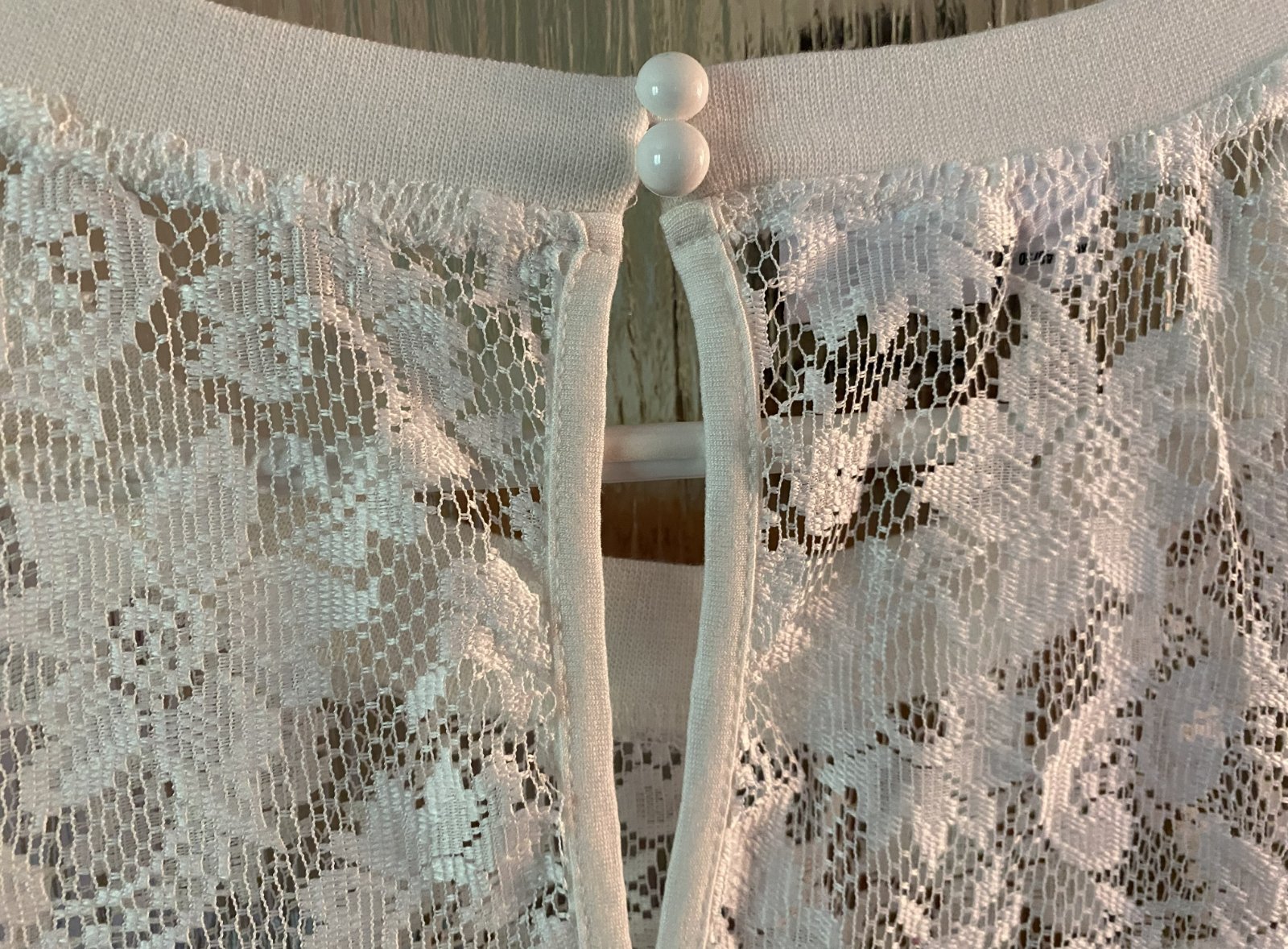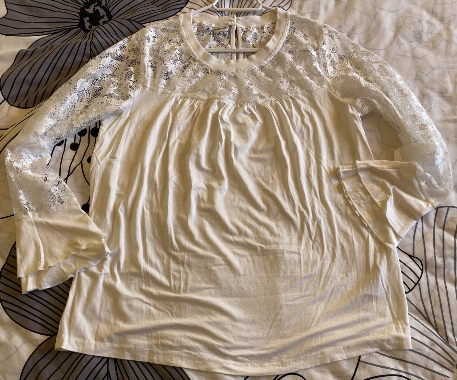 Tričko - top s čipkou Bodyflirt v. 42, materiál elastický "tričkový" materiál 95% viskóza, 5% elastan - tričkový elastický materiál, veľmi pekná čipka, pekná snehobiela farba, raz oblečený, v top stave. Miery: dĺžka 65cm, šírka v podpazuší: 55cmx2.