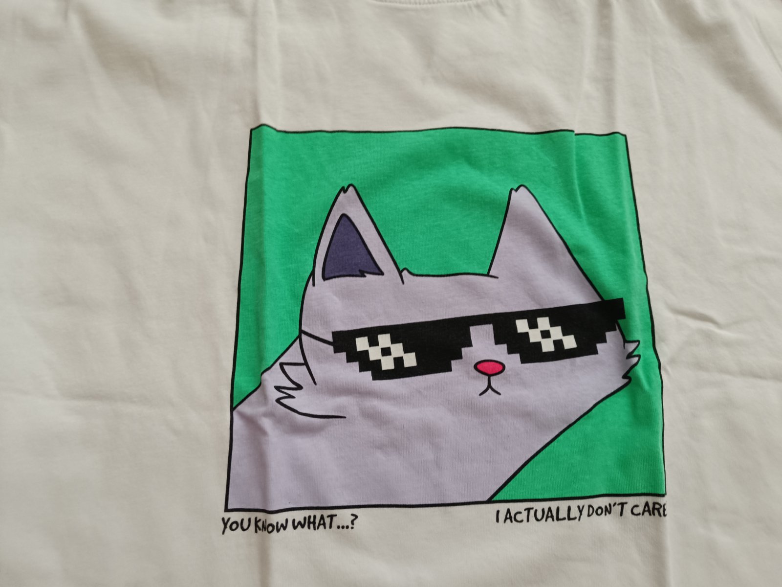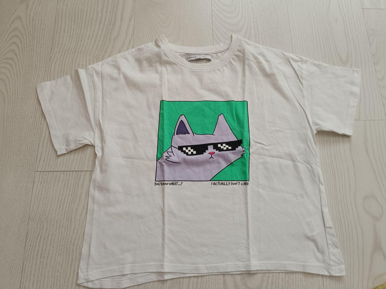 Biele tričko s mačkou s okuliarmi