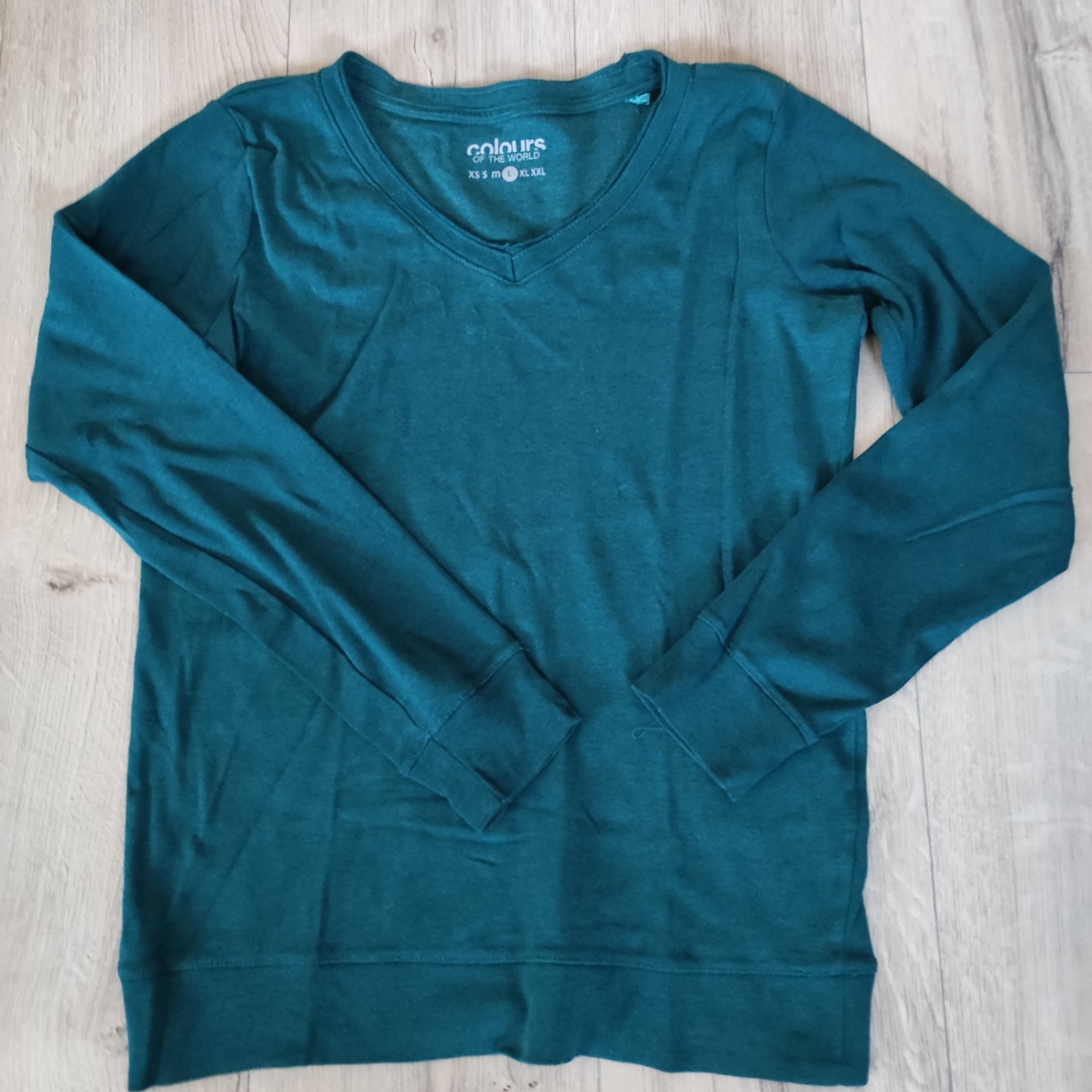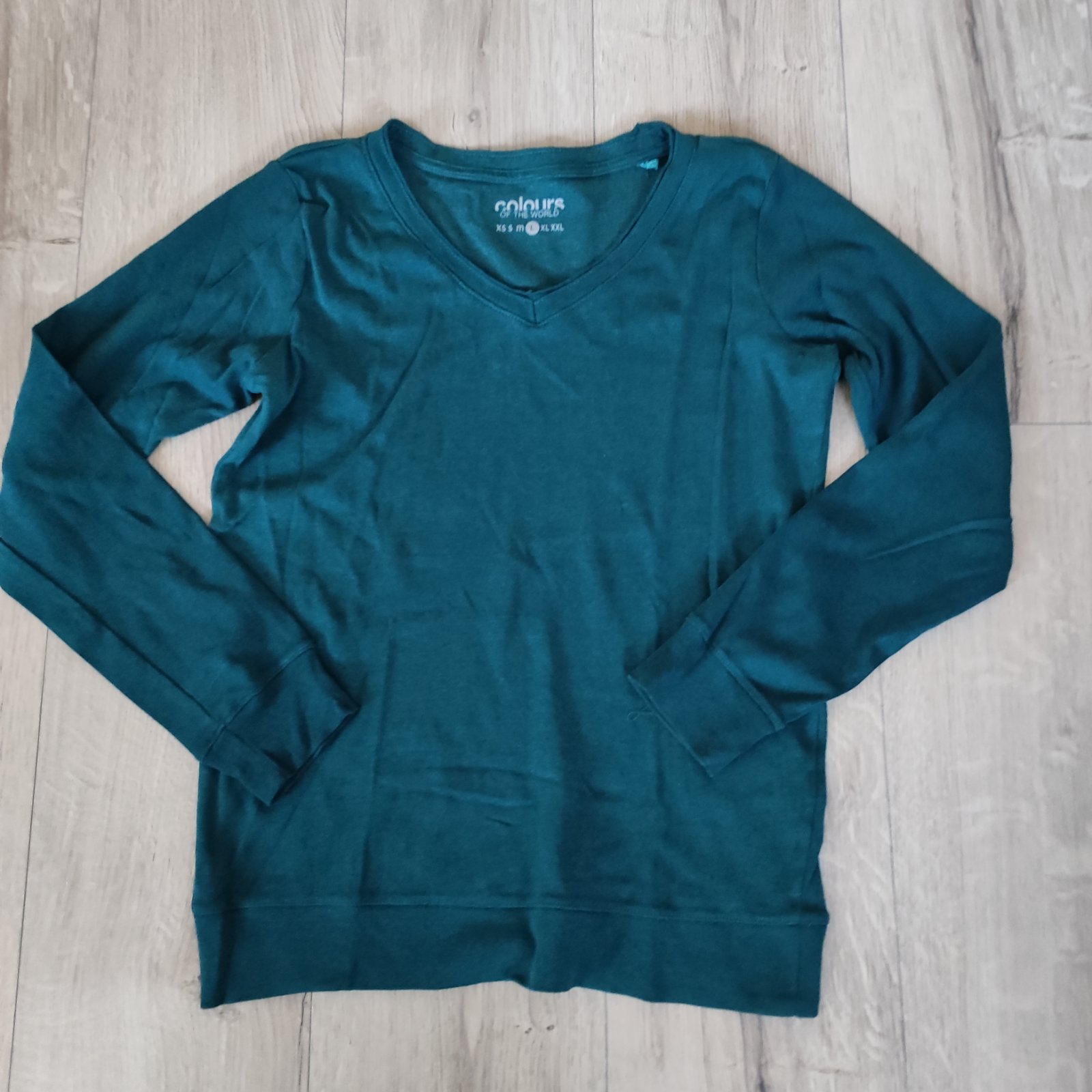 V super stave,farba petrolejová,dĺžka 61 cm,šírka cez prsia 47,5 krát dva ,veľkosť je uvedená L ale nesedí tak som označila M