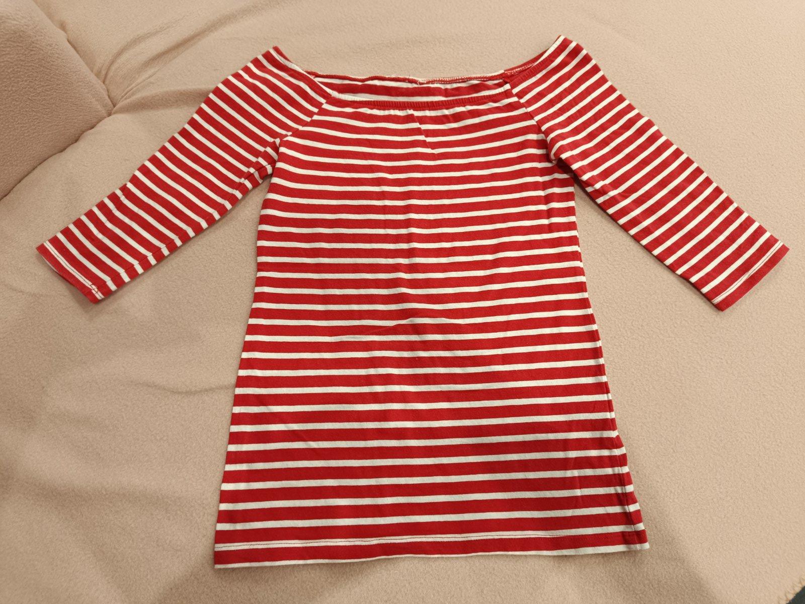 Kupovaný v Anglicku asi 2 roky dozadu. Nosený málo. Nádherný prúžkovaný top 100% bavlna. 3/4 rukáv. Miery: dĺžka: 51 cm širka pod pažami: 33 cm rukáv od krku: 50 cm **** KUK OSTATNÉ INZERÁTY ****