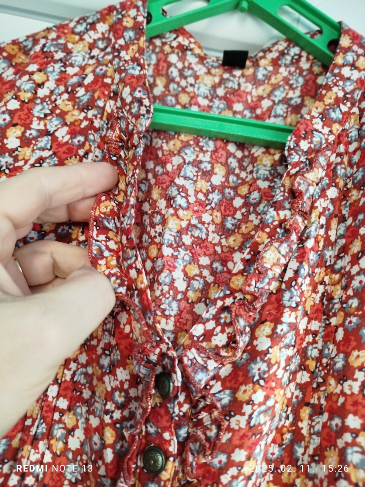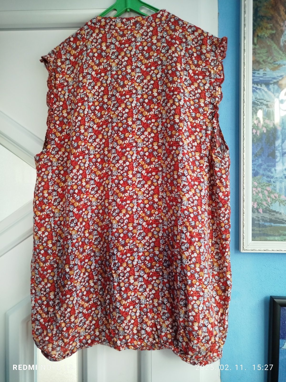 Veľkosť odhadom, dĺžka 61cm, šírka pod pazuchami 2x48cm, materiál nie je elasticky, tenká bavlna, celkom dole guma.