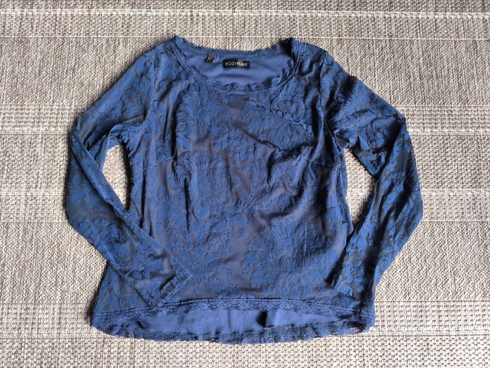 Čipkovaný tričko, krajkový top, blúzka. Na tele je dvojvrstvové, takže nepresvitá, rukávy sú len z čipky. V super stave. Vhodné na slávnostnú príležitosť - svadbu, oslavu, fotenie. Možno kombinovať s nohavicami, krátkou či dlhou sukňou. Veľkosť 40/42. Dĺžka 58cm, šírka cez prsia 53-62cm (je elastické), rukáv od ramena 63cm.