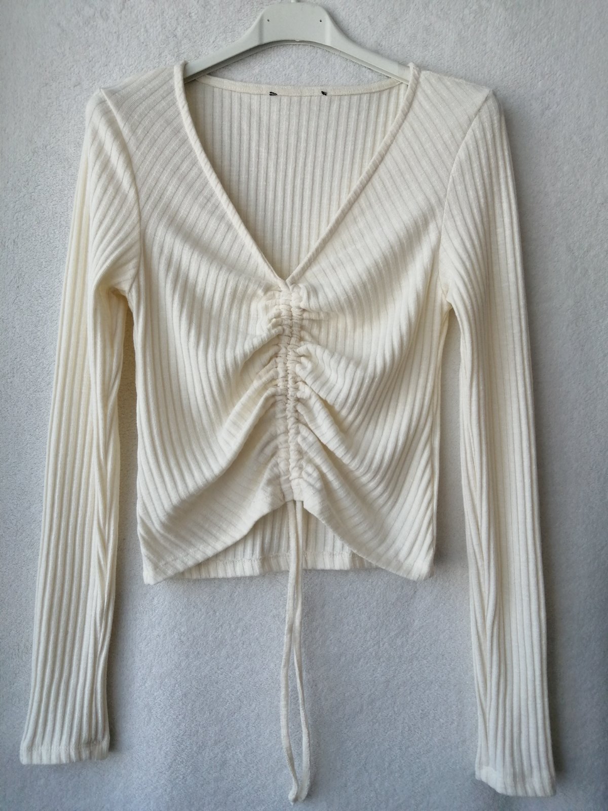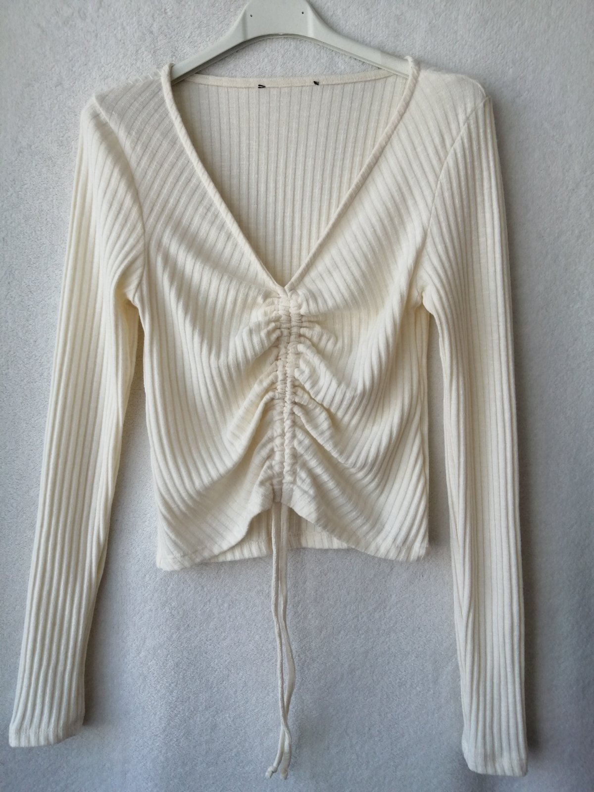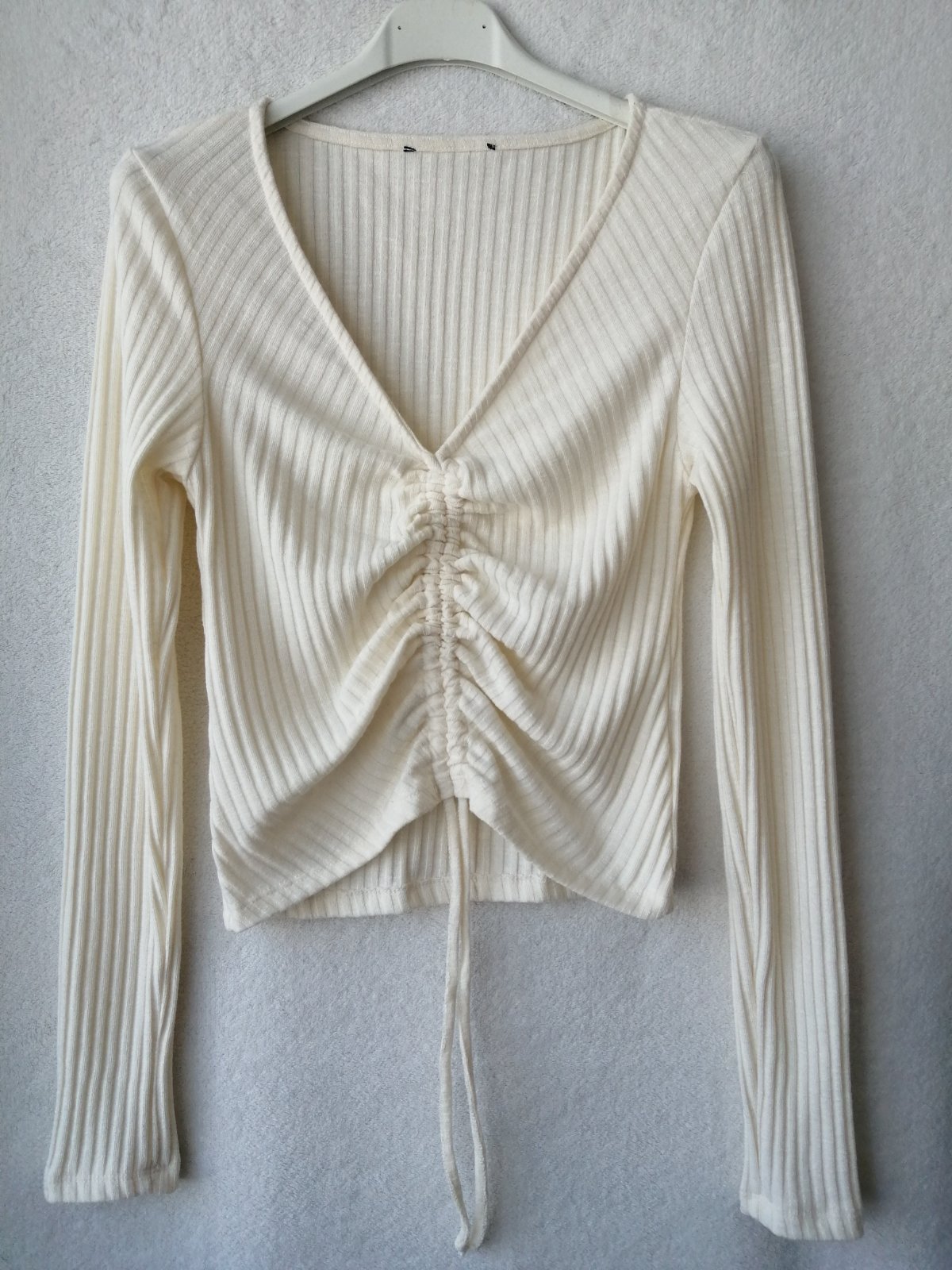 Pekný top /tričko zakúpený v MOHITO . Veľkosť 36 alebo S (aj sedí na túto veľkosť.) Príjemný pružný materiál. Farba - jemnučká smotano-vanilková. Takmer nový, nepoužitý - len opraný
