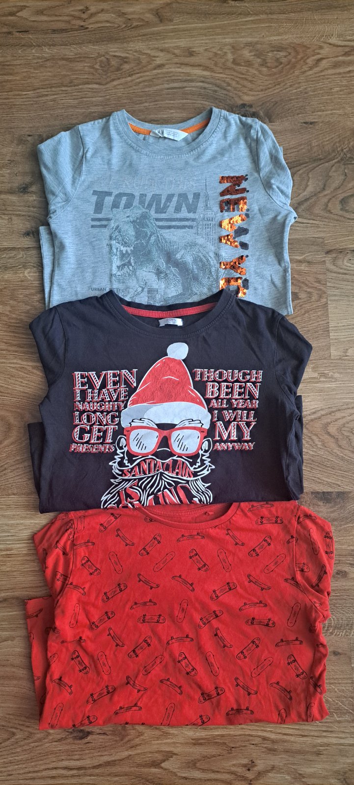 Predám tričká s dlhými rukávmi. Nosené, ale v dobrom stave. Vidno známky nosenia a prania. Inak bez poškodení. Veľkosť: 134/140. Cena spolu: 5€