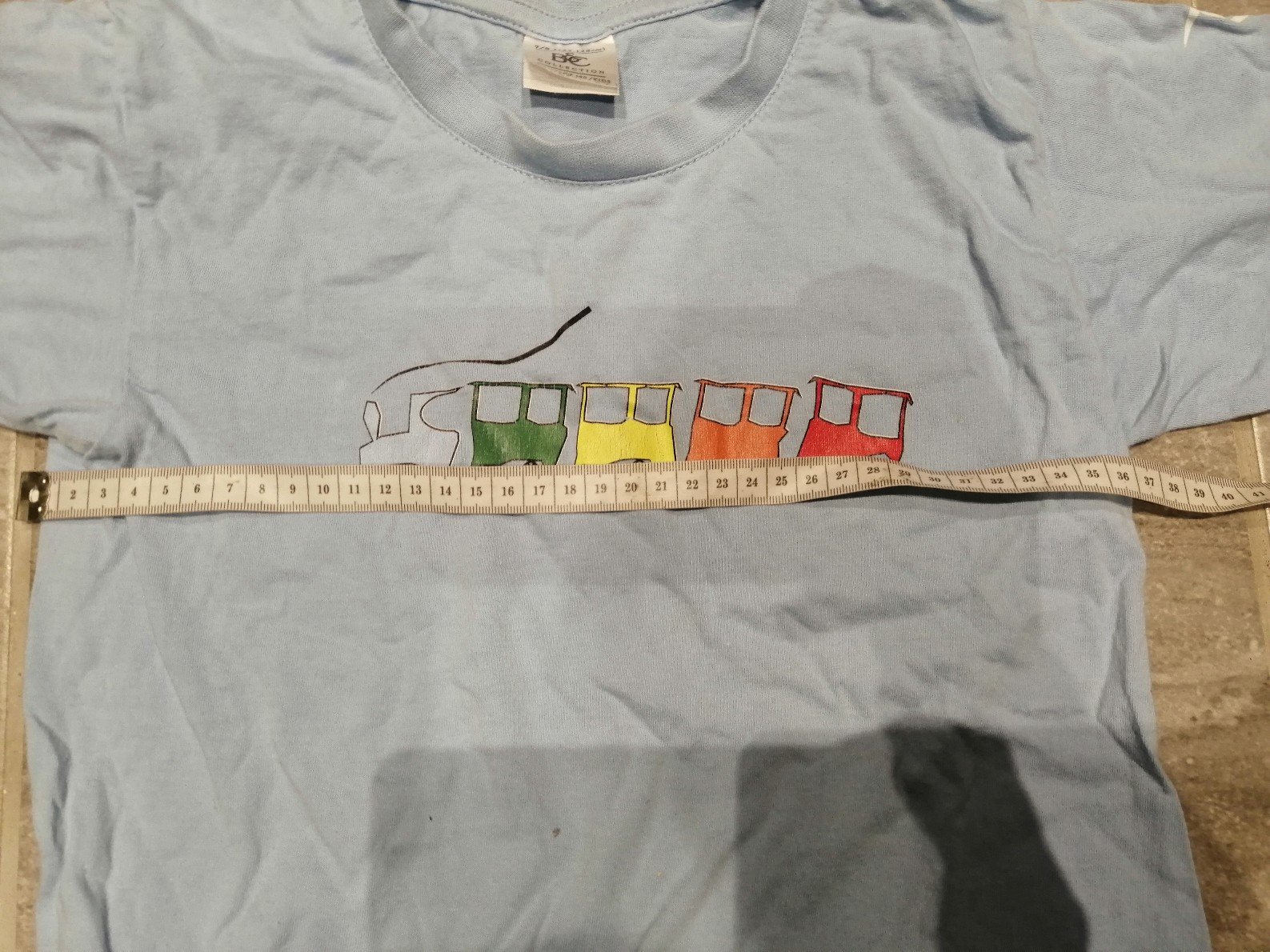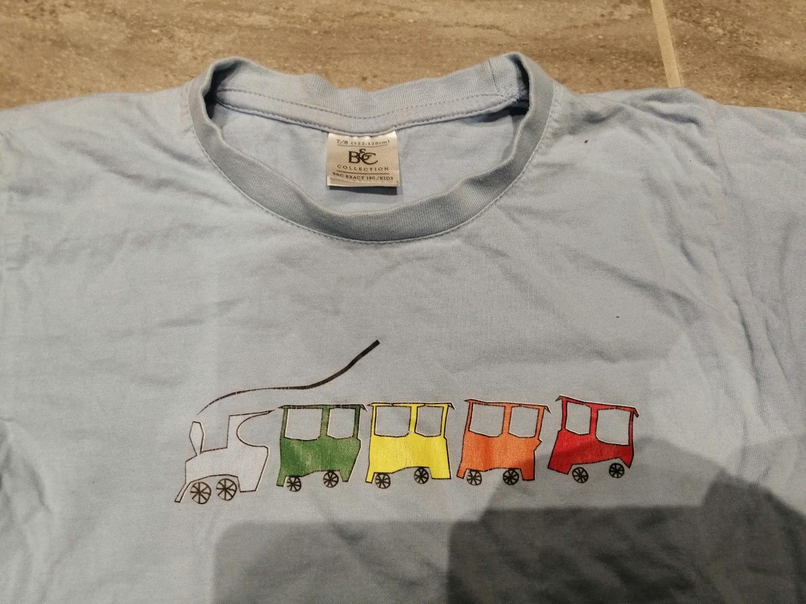 Tričko modré vláčik, v122-128,7-8r.,bavlna