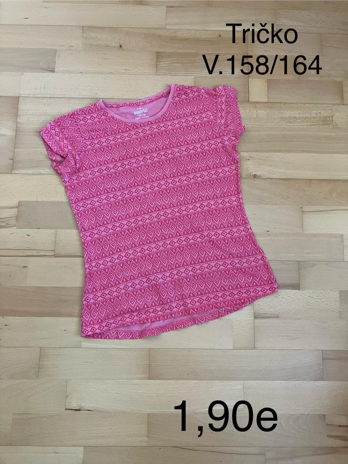 Bavlnené tričko, uvedená veľkosť 164, ale odporúčam ako veľkosť 158, prípadne 152/158. Farba bordovoružová. Výborný stav, 2 x oblečené. Cena: 3,90 eur + poštovné