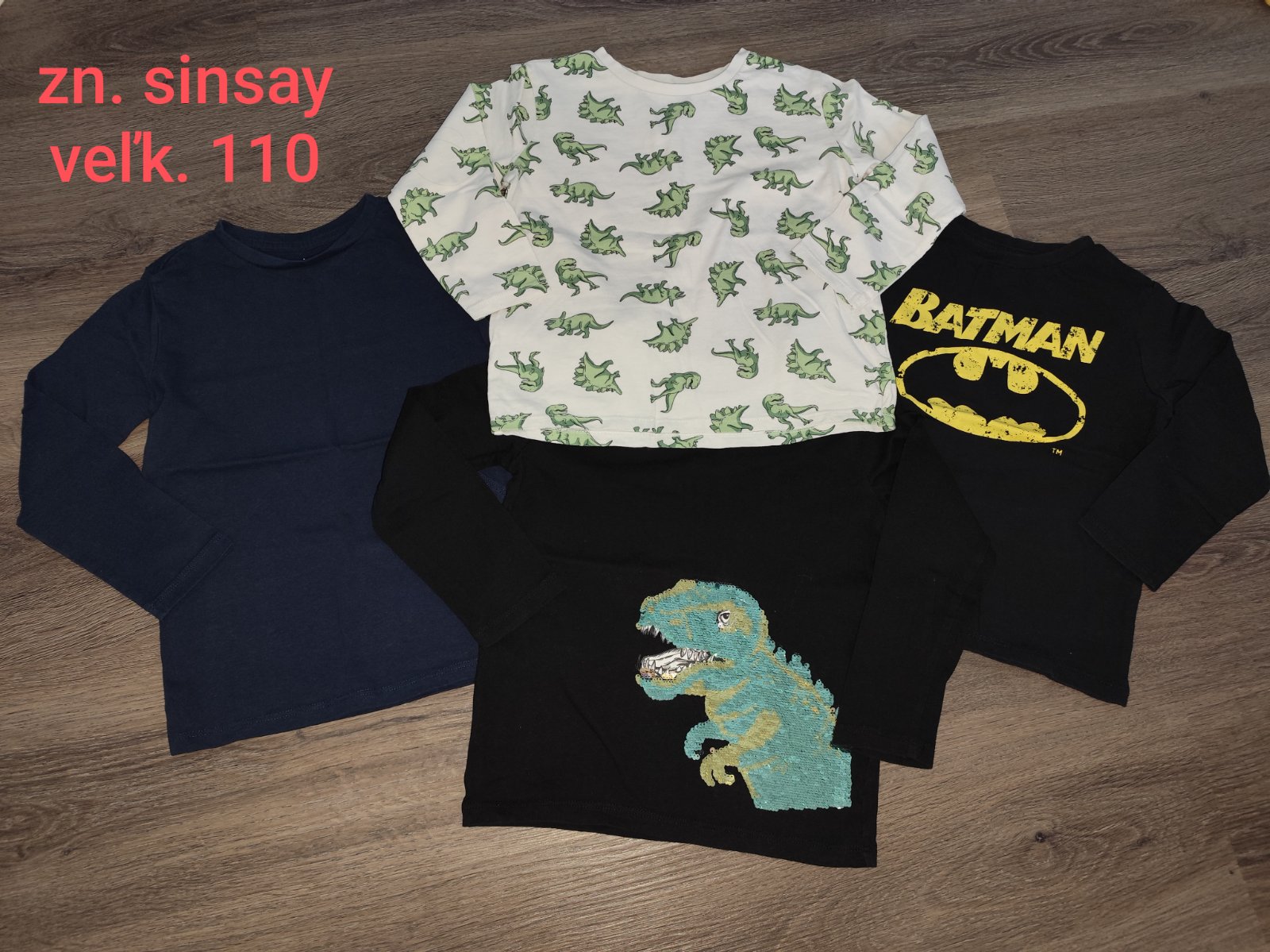 Predám bavlnené tričká s dlhým rukávom, krásne sýte farby, nosené jedným dieťaťom v top stave. Veľkosť uvedená 110, ale keďže je to sinsay, tipla by som skôr veľkosť 104. Na dĺžku majú tričká od krku po pás cca 35-36cm.