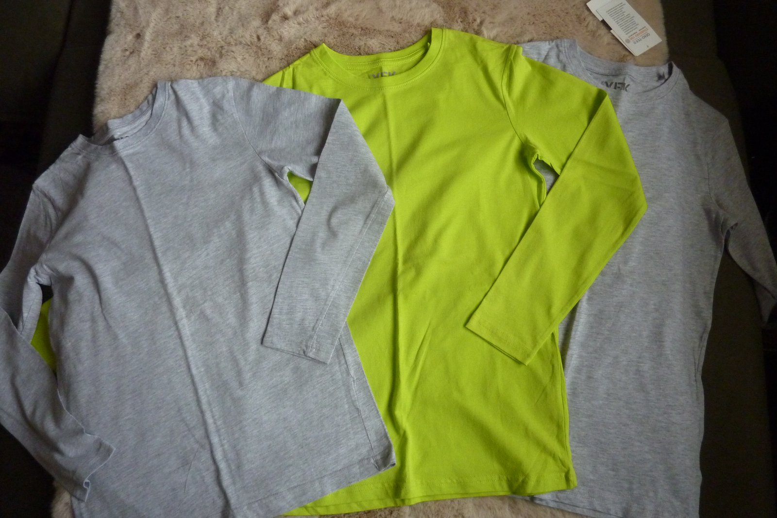 Bavlnené nátelníky, 100% bavlna, dlhý rukáv, veľ.146/152, chlapčenské, dvojo sú sivé a jeden je neónovozelený. Stav ako na fotkách.