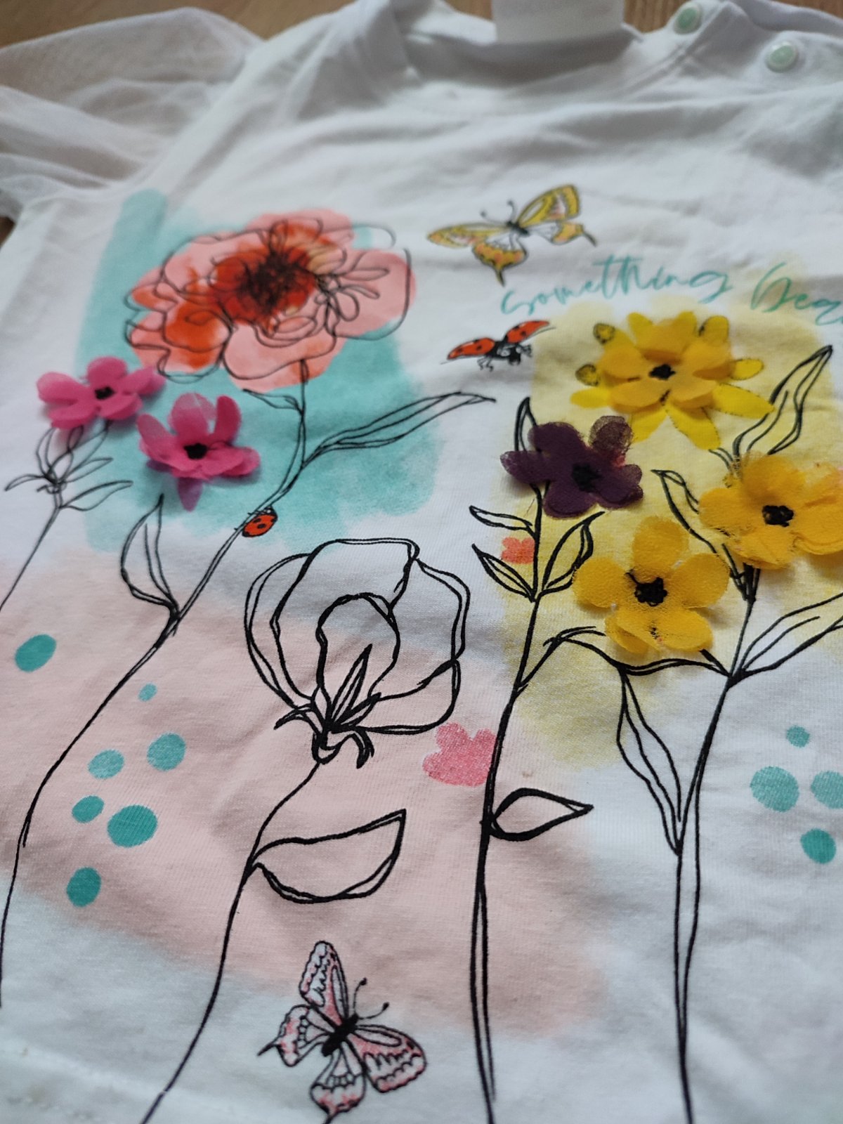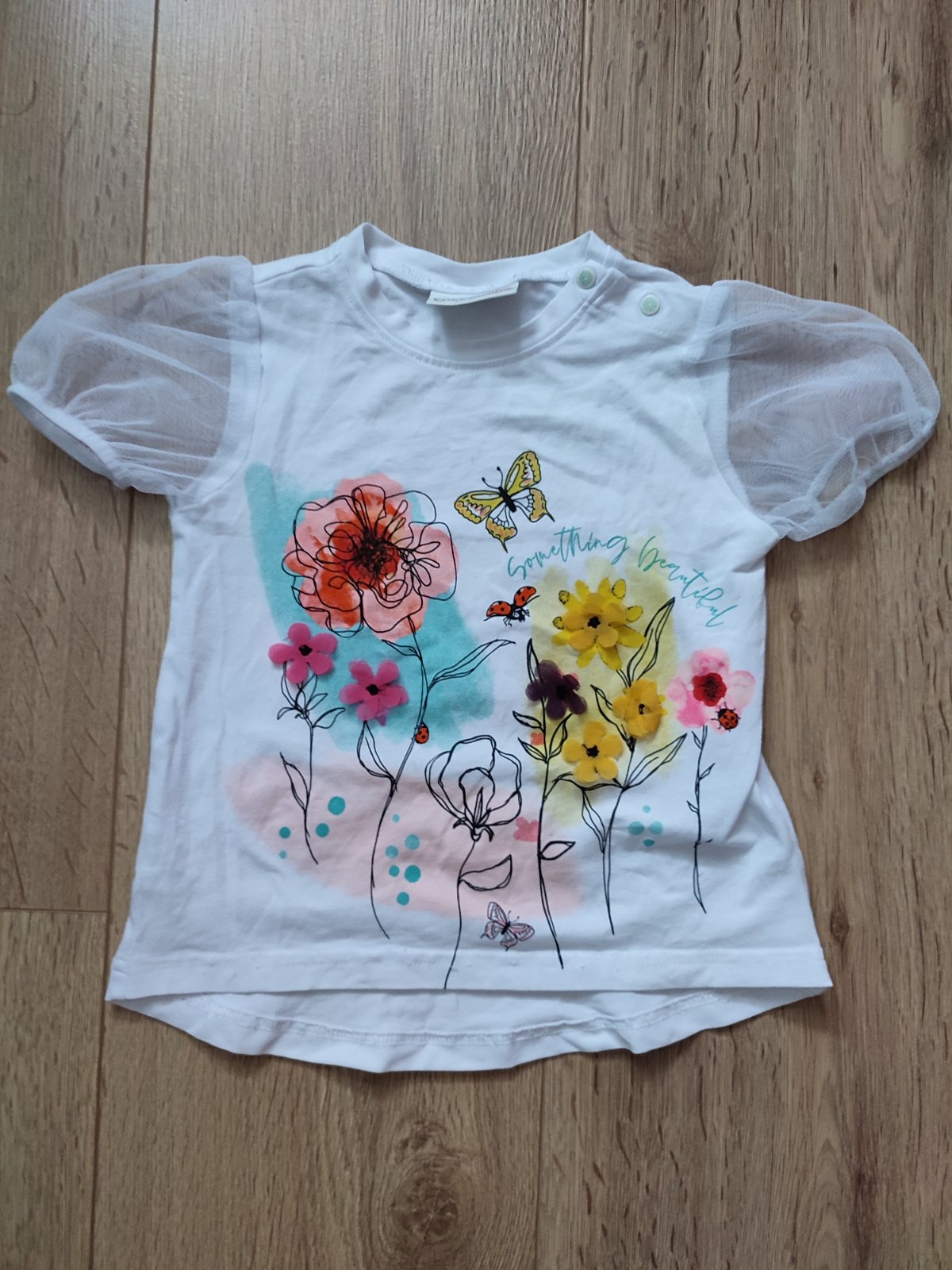 Nádherné tričko s motívom kvietkov, veľkosť 92, no kľudne aj 98. Top stav, dcéra ho mala len párkrát.
